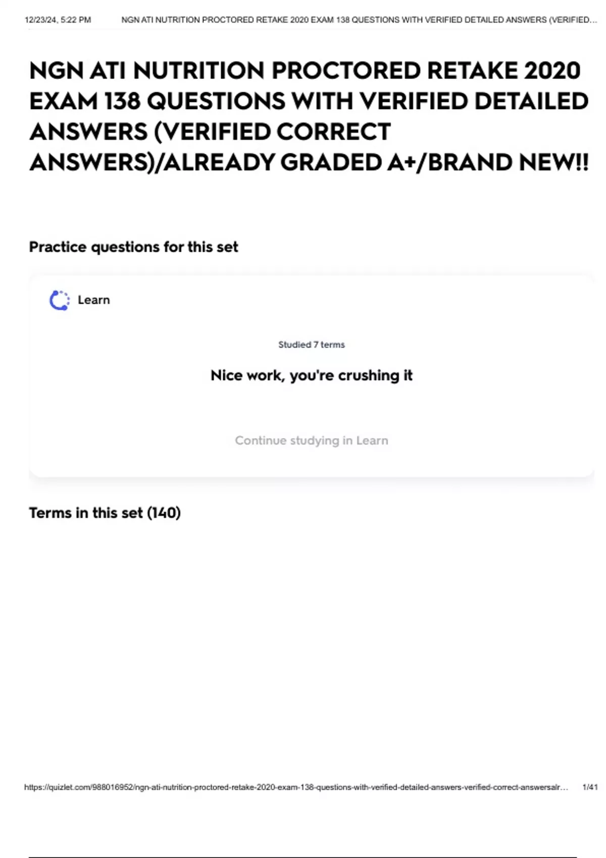 , 12/23/24, 5:22 PM NGN ATI NUTRITION PROCTORED RETAKE 2020 EXAM 138 QUESTIONS WITH VERIFIED DETAILED ANSWERS (VERIFIED…
