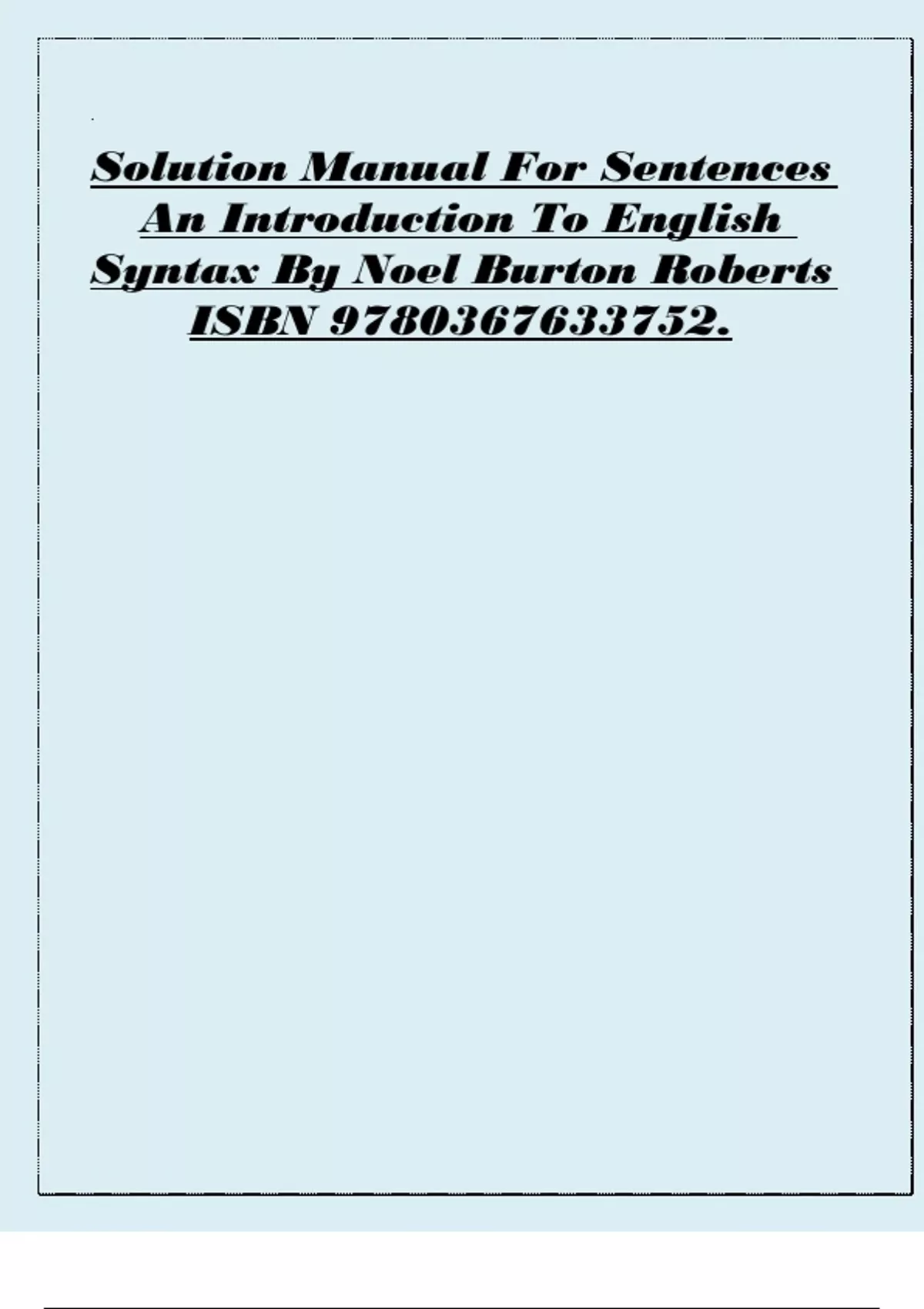 Solution Manual For Sentences An Introduction To English Syntax By Noel Burton Roberts ISBN 9780367633752.