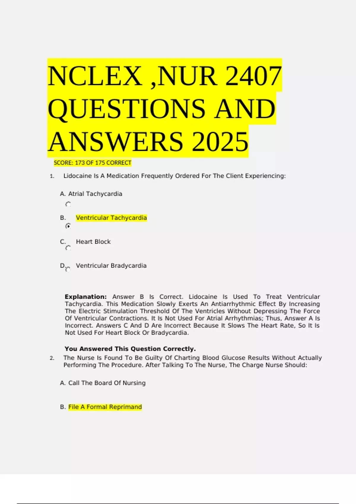 NCLEX ,NUR 2407 QUESTIONS AND ANSWERS 2025