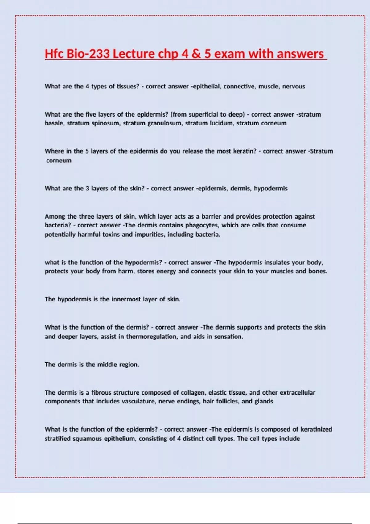 Hfc Bio-233 Lecture chp 4 & 5 exam with answers