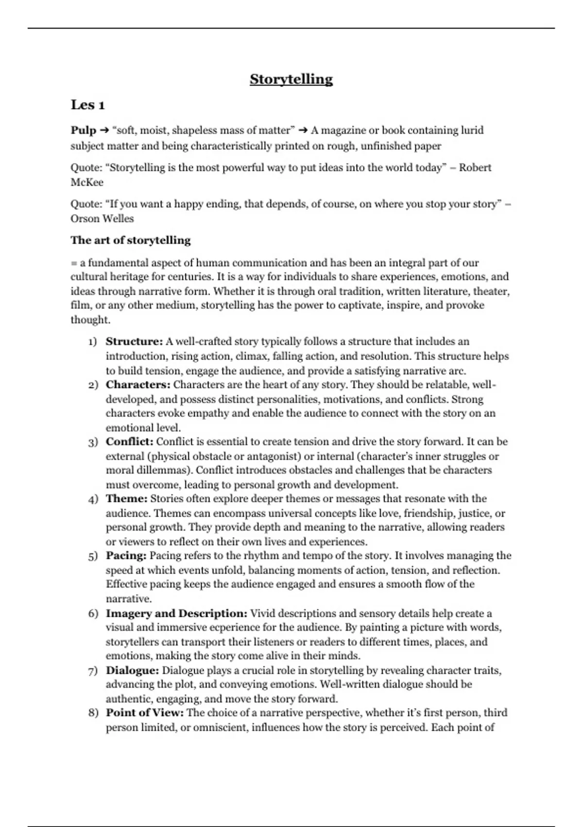 In dit document vindt je een samenvatting van de lessen en powerpoints van al de lessen van storytelling.