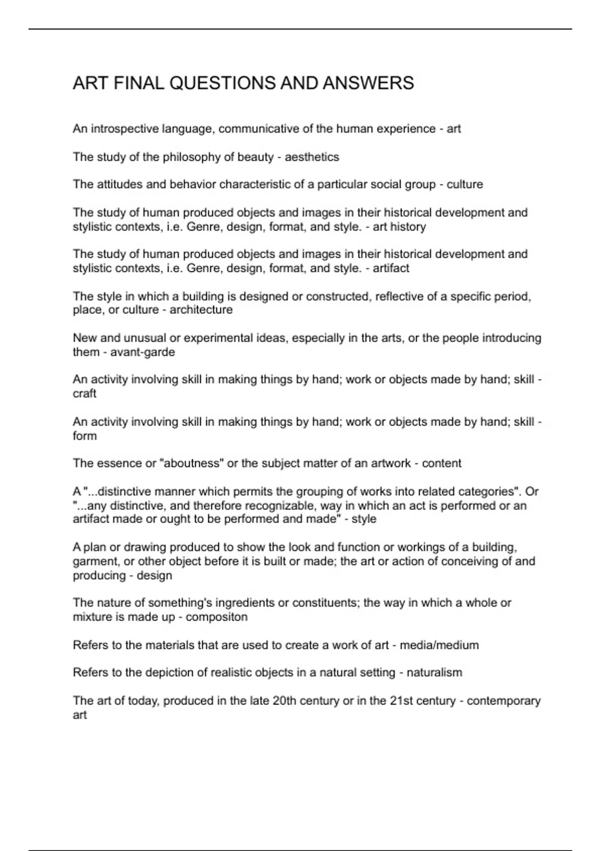 ART FINAL QUESTIONS AND ANSWERS