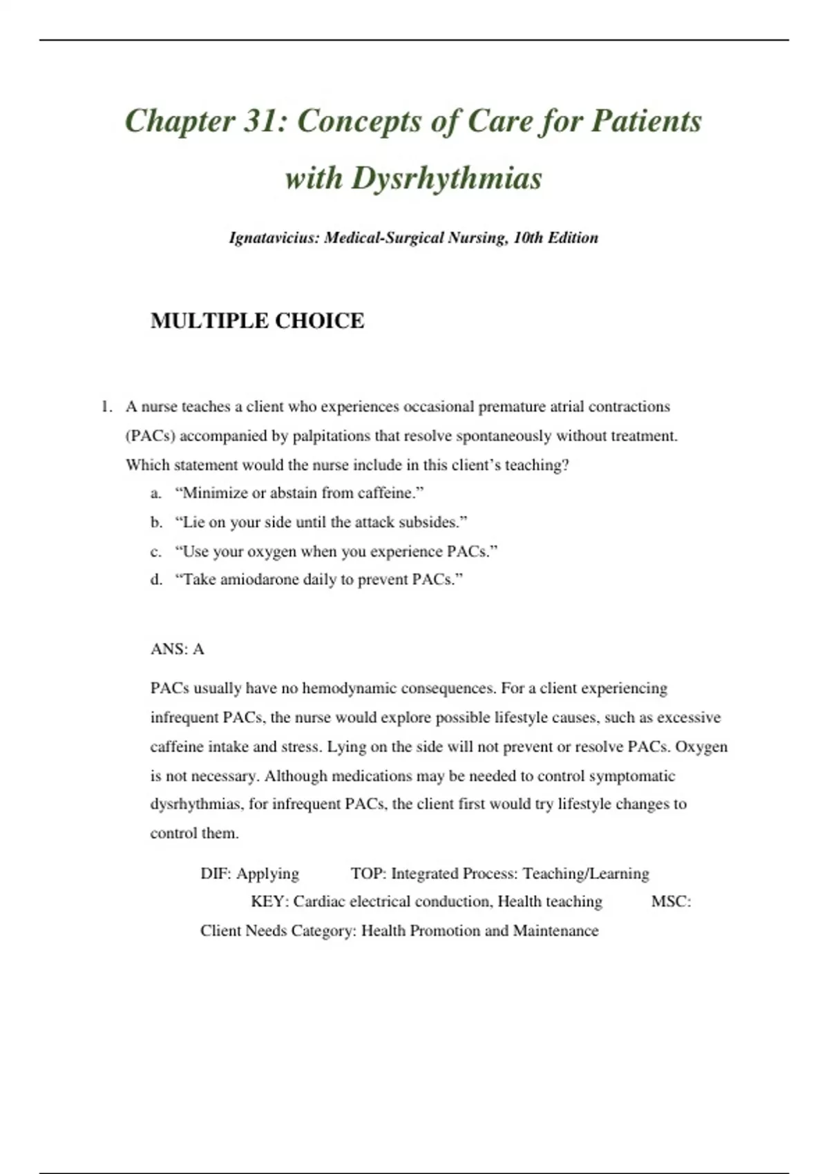 1. A nurse teaches a client who experiences occasional premature atrial contractions