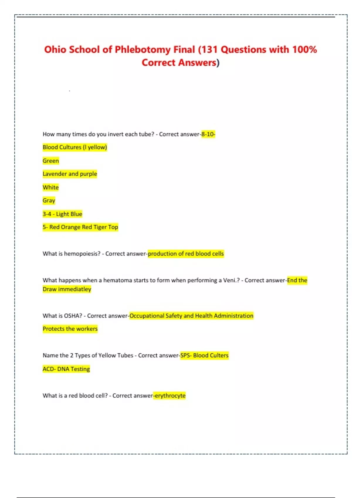 HBA1c test is what tube - Correct answer-lavender