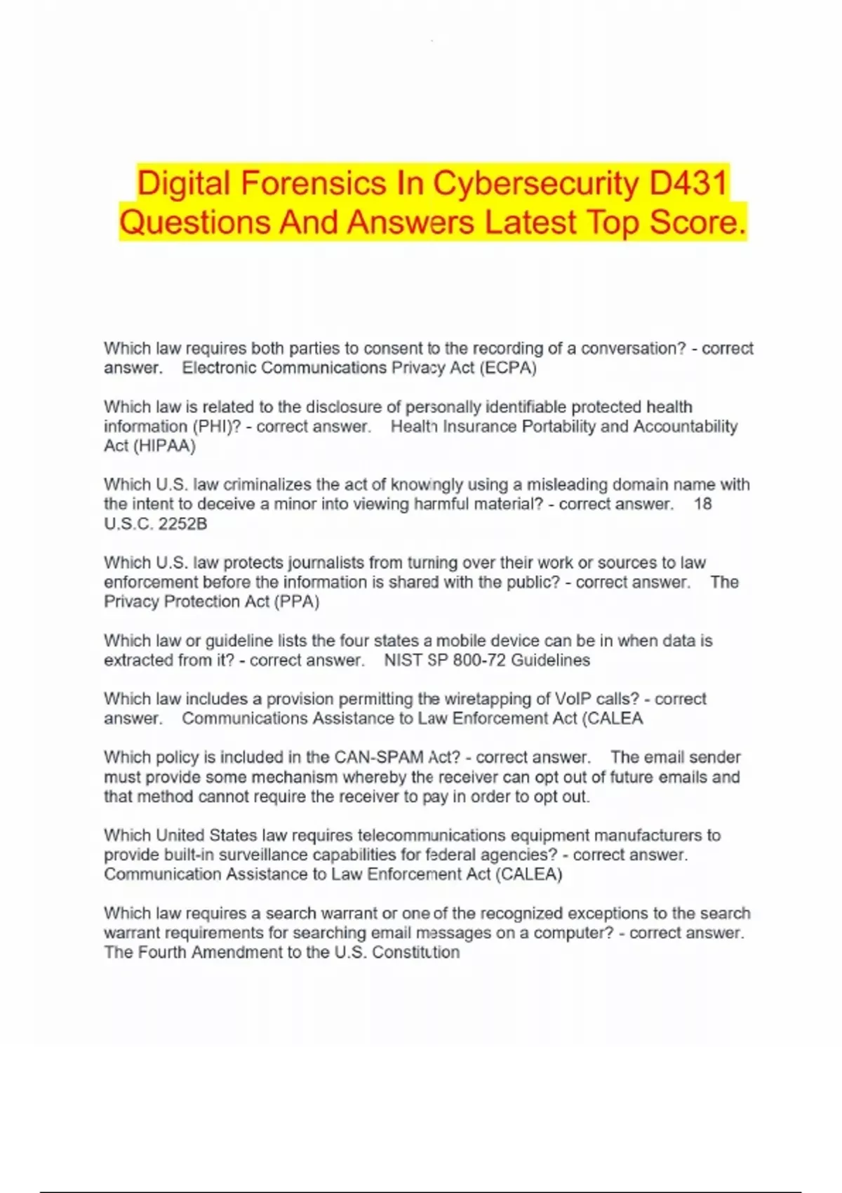 Digital Forensics In Cybersecurity D431 Questions And Answers Latest Top Score.