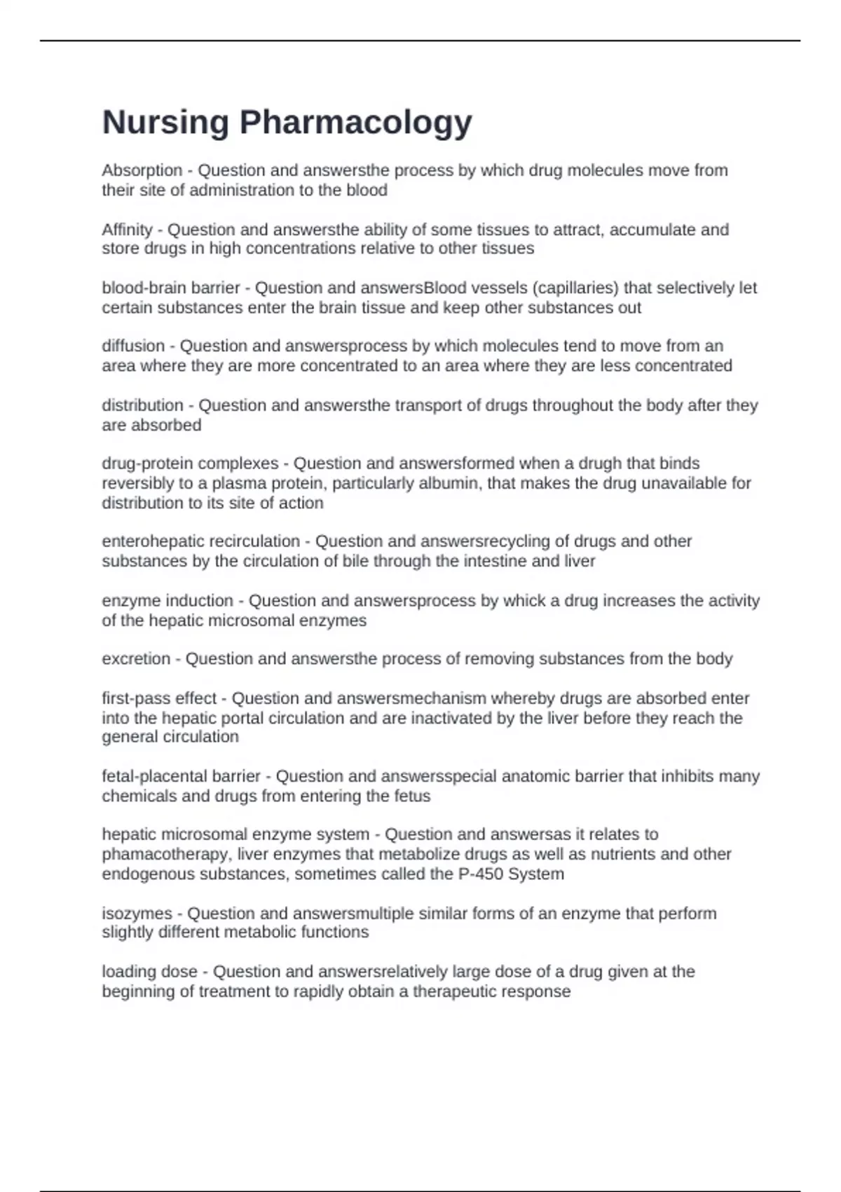 Nursing Pharmacology Exam with Questions and 100% correct Answers