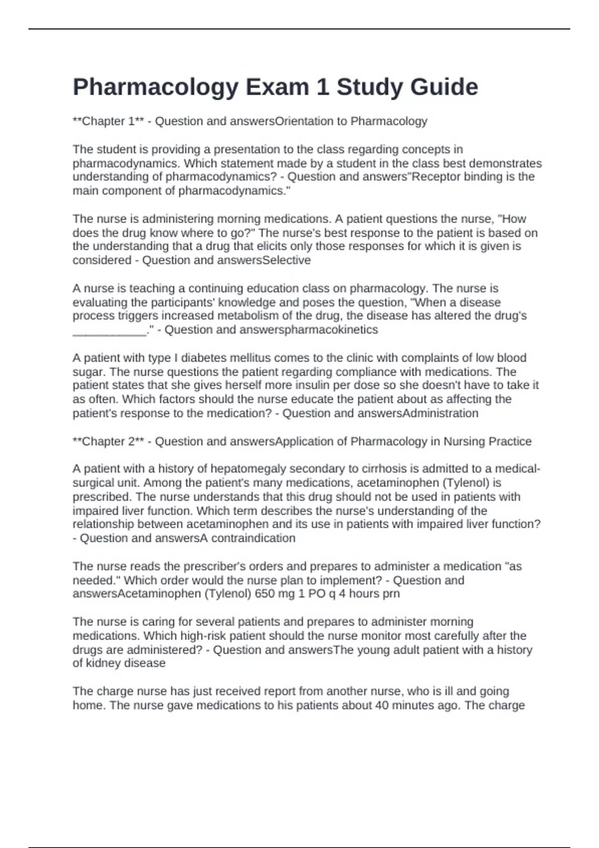**Chapter 1** - Question and answersOrientation to Pharmacology