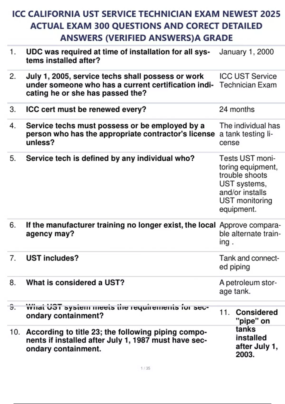 ,ICC CALIFORNIA UST SERVICE TECHNICIAN EXAM NEWEST 2025