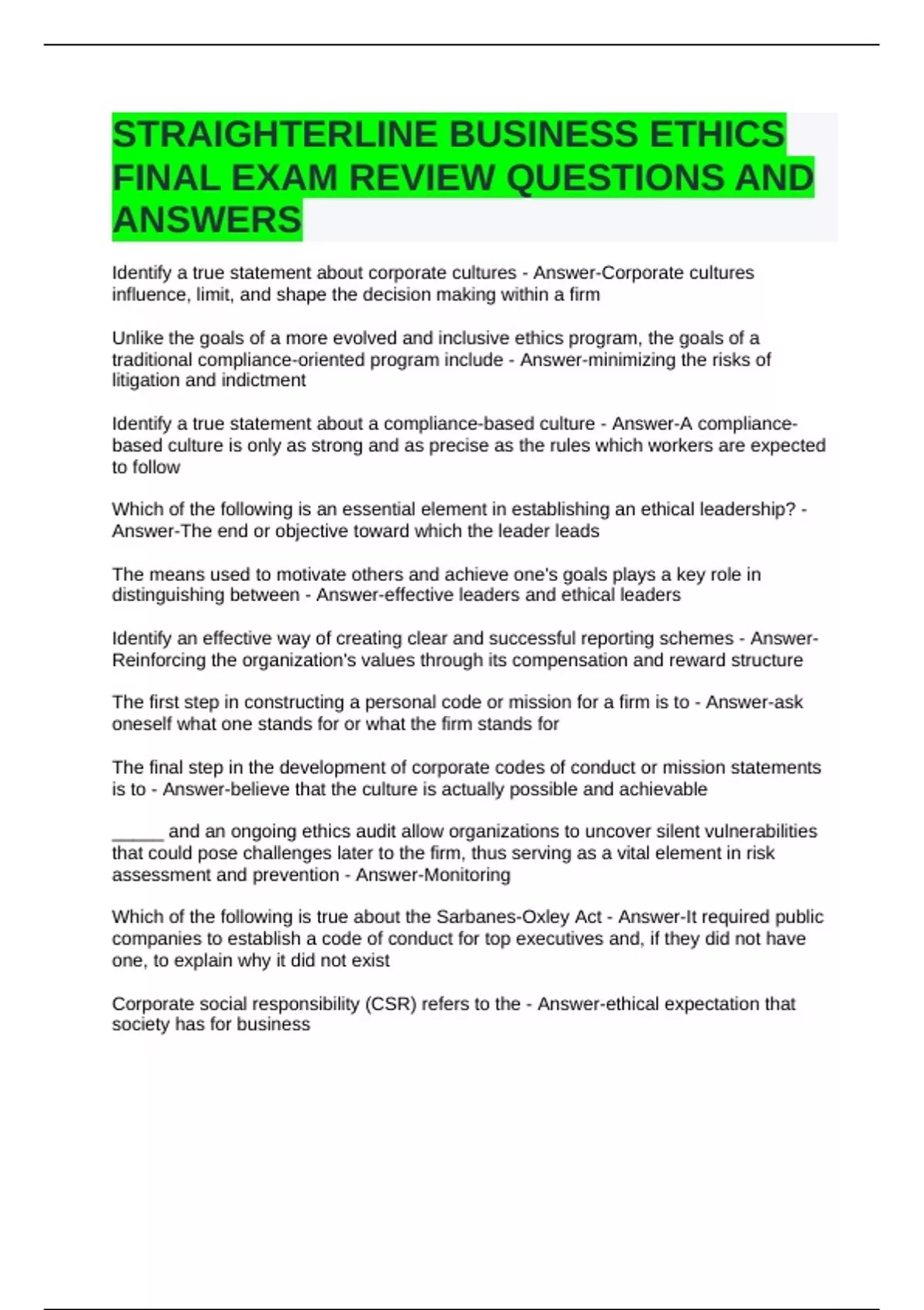 STRAIGHTERLINE BUSINESS ETHICS