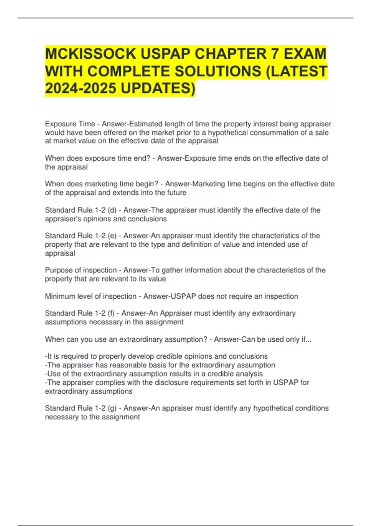 Standard Rule 1-2 (f) - Answer-An Appraiser must identify any extraordinary