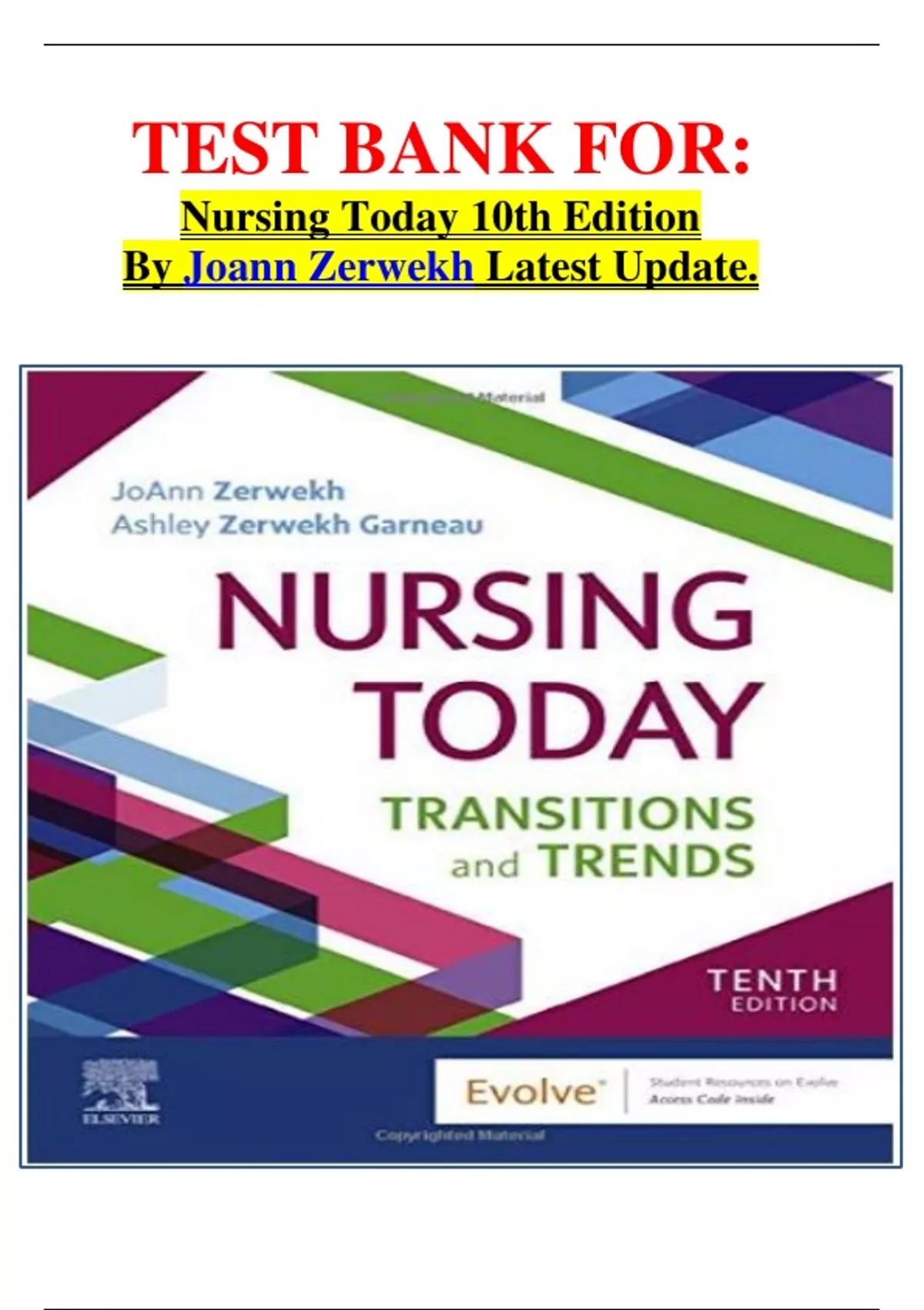 TEST BANK FOR: Nursing Today 10th Edition By Joann Zerwekh Latest Update.