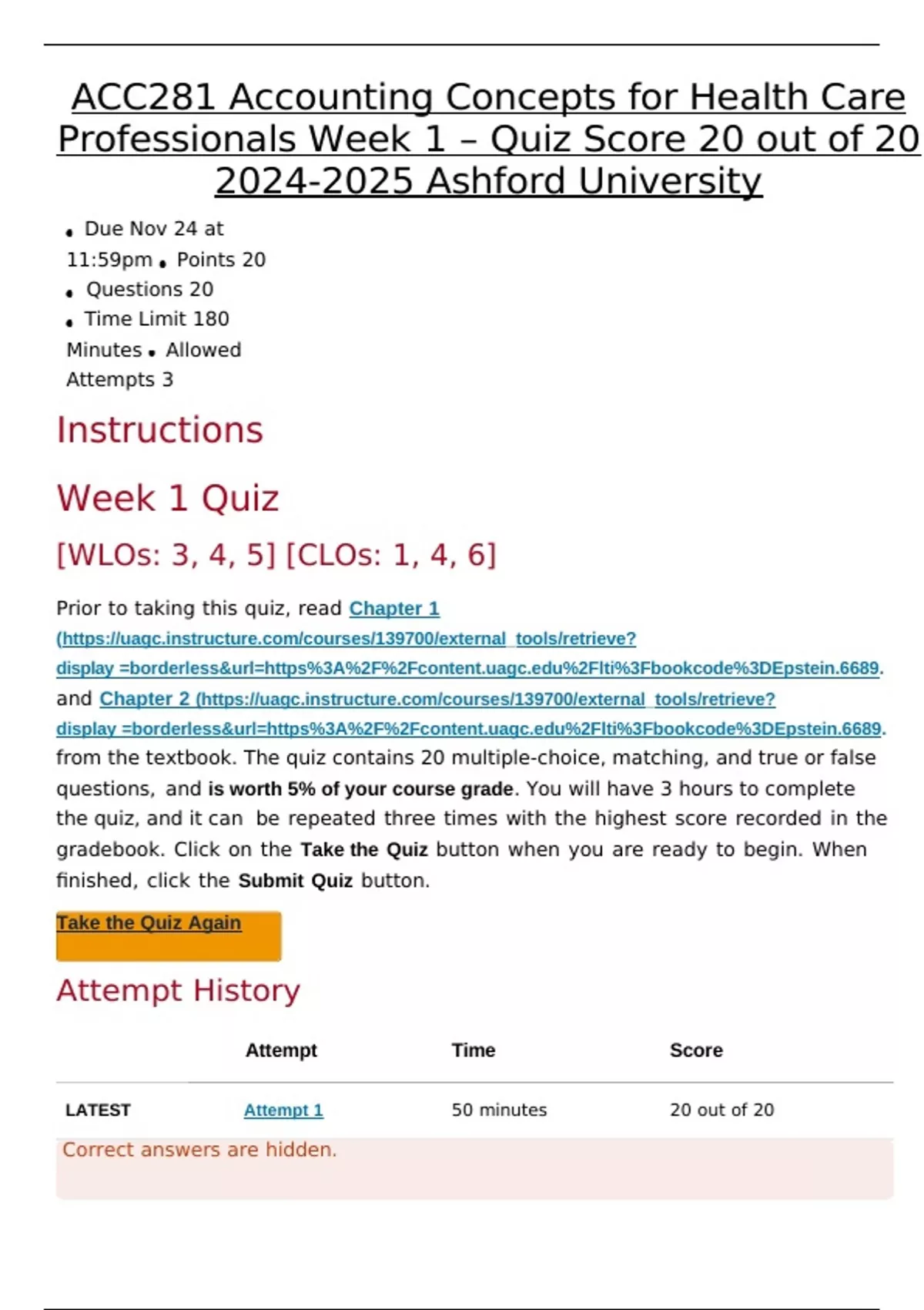 gradebook. Click on the Take the Quiz button when you are ready to begin. When