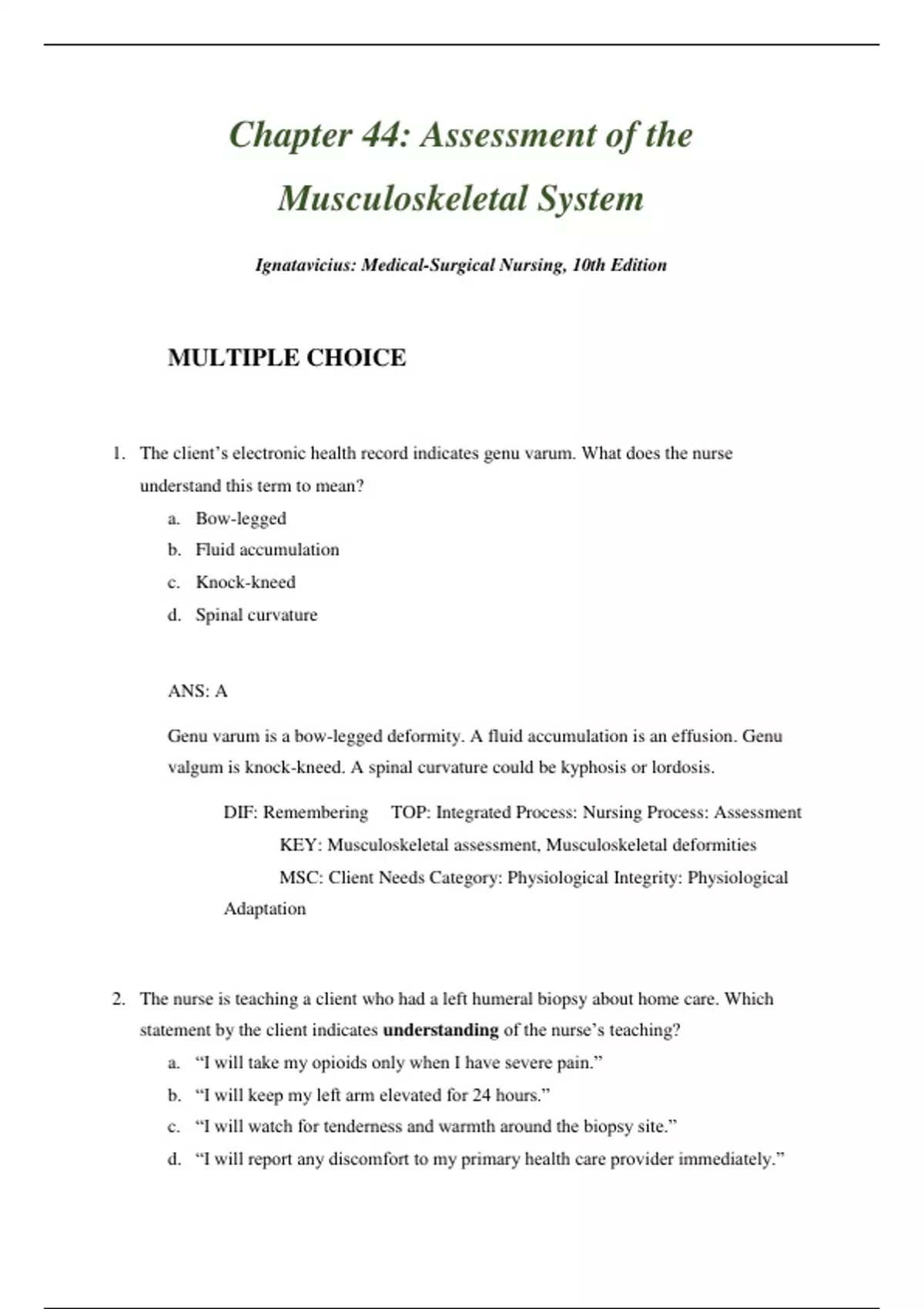 KEY: Musculoskeletal assessment MSC: Client Needs
