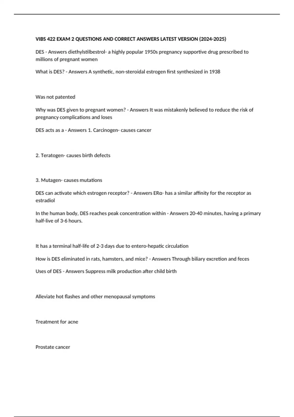 DES acts as a - Answers 1. Carcinogen- causes cancer
