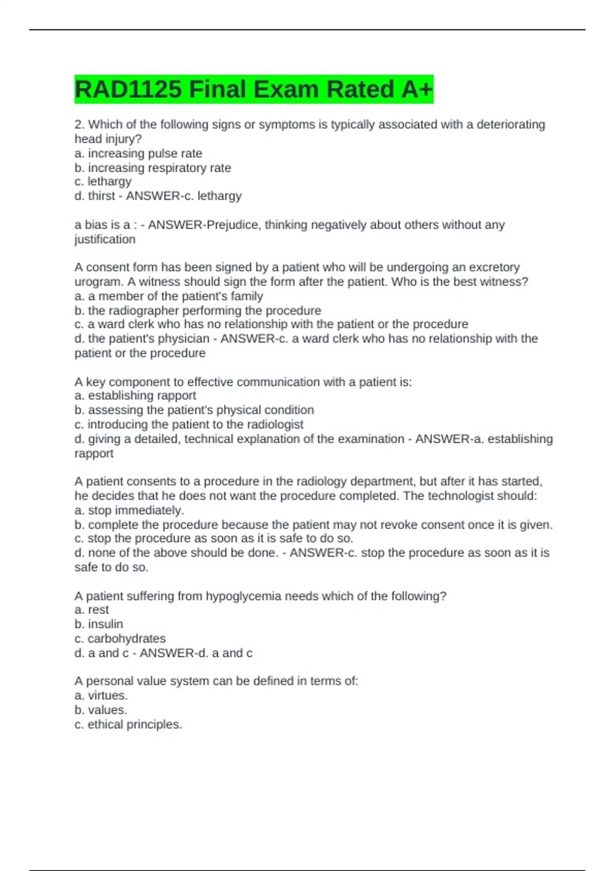 d. thirst - ANSWER-c. lethargy