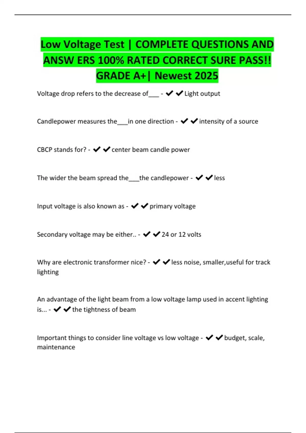 Low Voltage Test | COMPLETE QUESTIONS AND
