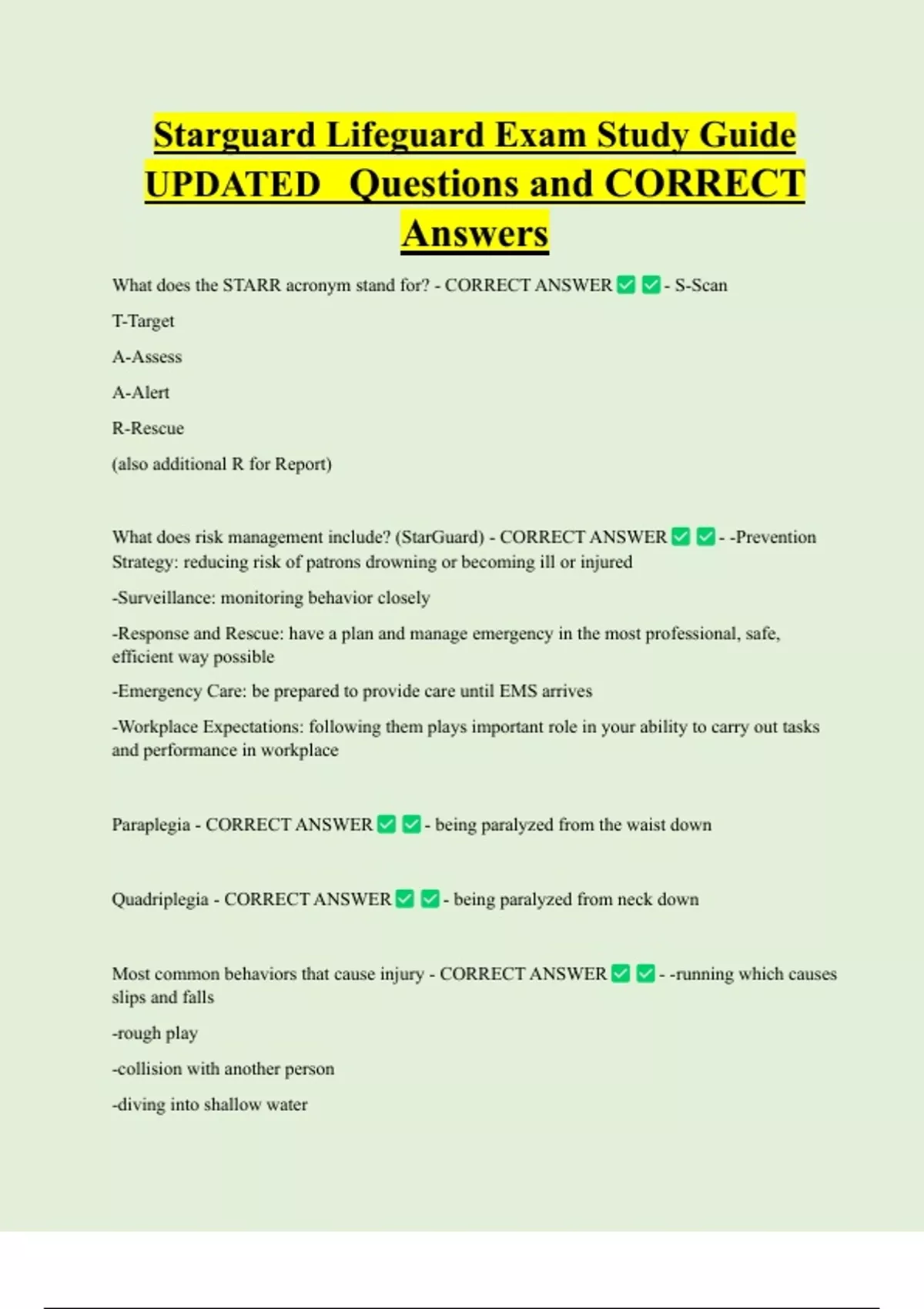 UPDATED Questions and CORRECT