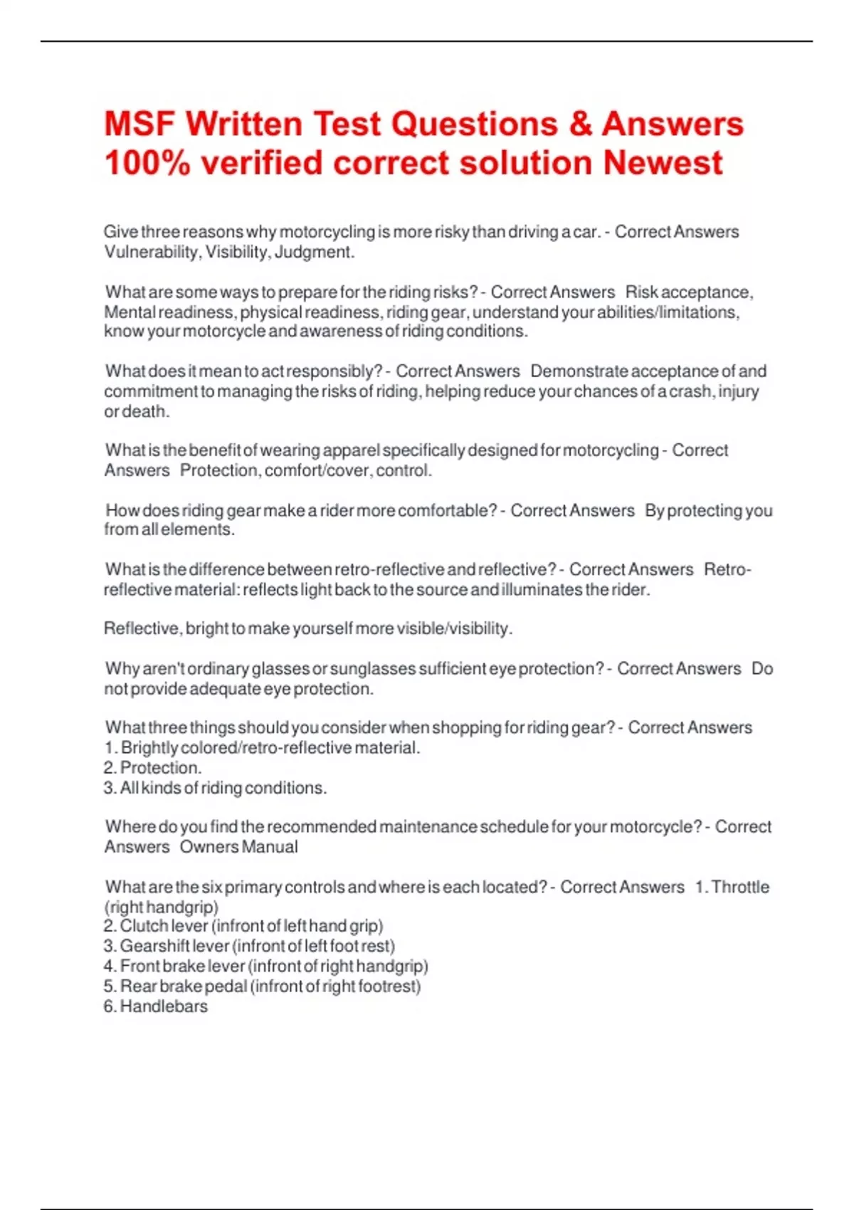 Give three reasons why motorcycling is more risky than driving a car. - Correct Answers