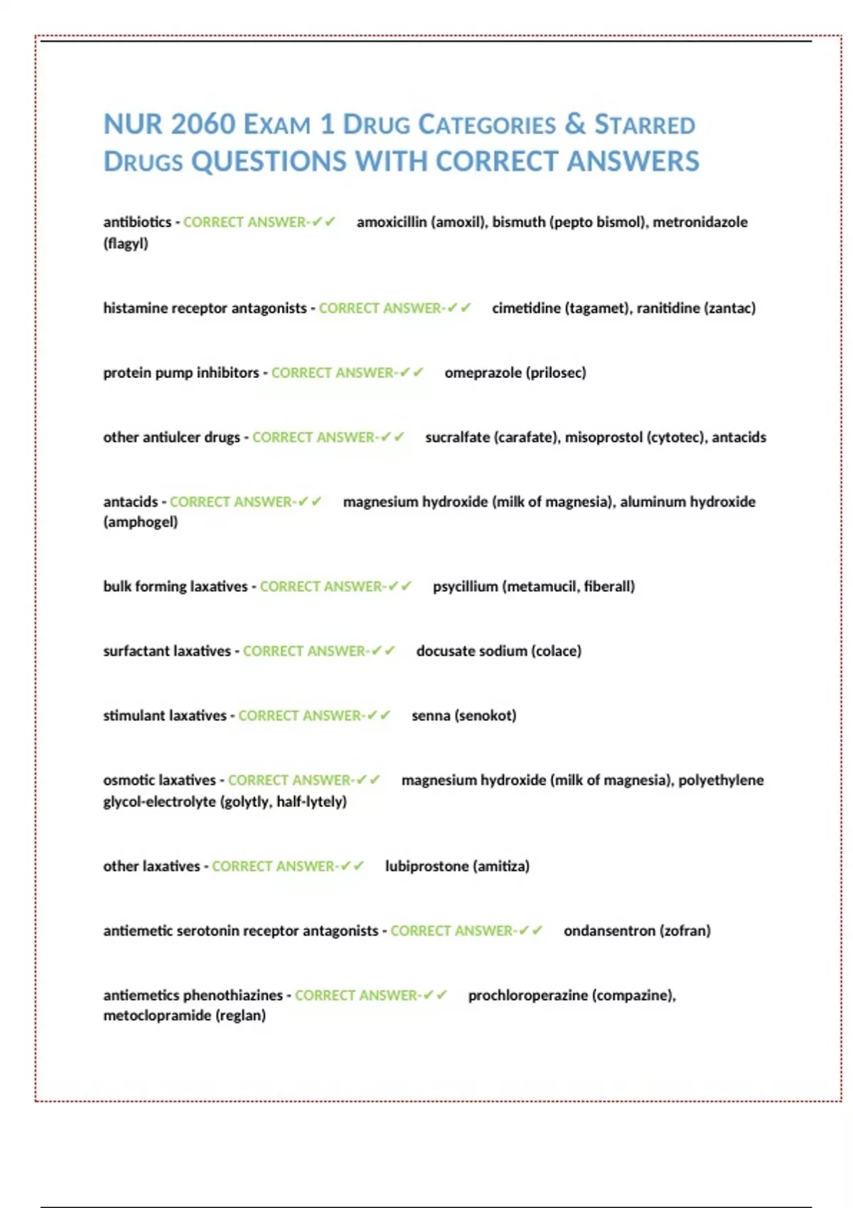 NUR 2060 EXAM 1 DRUG CATEGORIES & STARRED DRUGS QUESTIONS WITH CORRECT ANSWERS