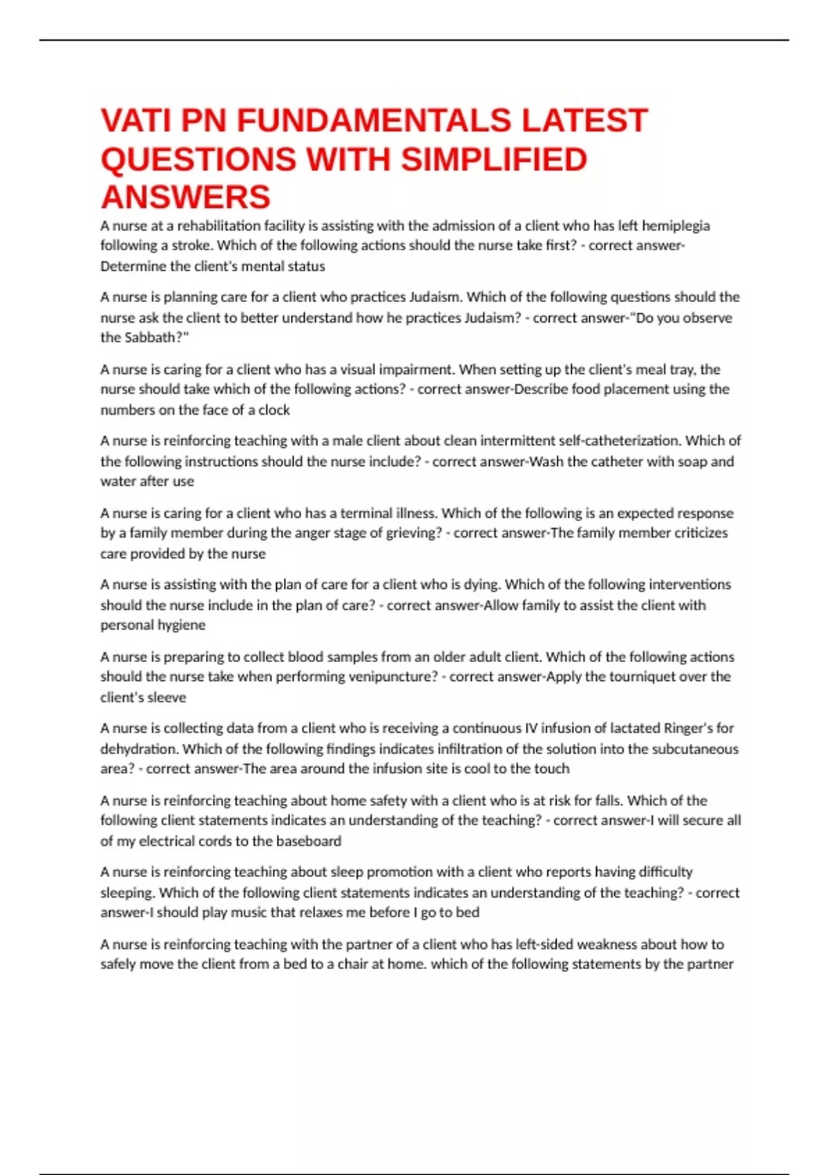 VATI PN FUNDAMENTALS LATEST QUESTIONS WITH SIMPLIFIED ANSWERS
