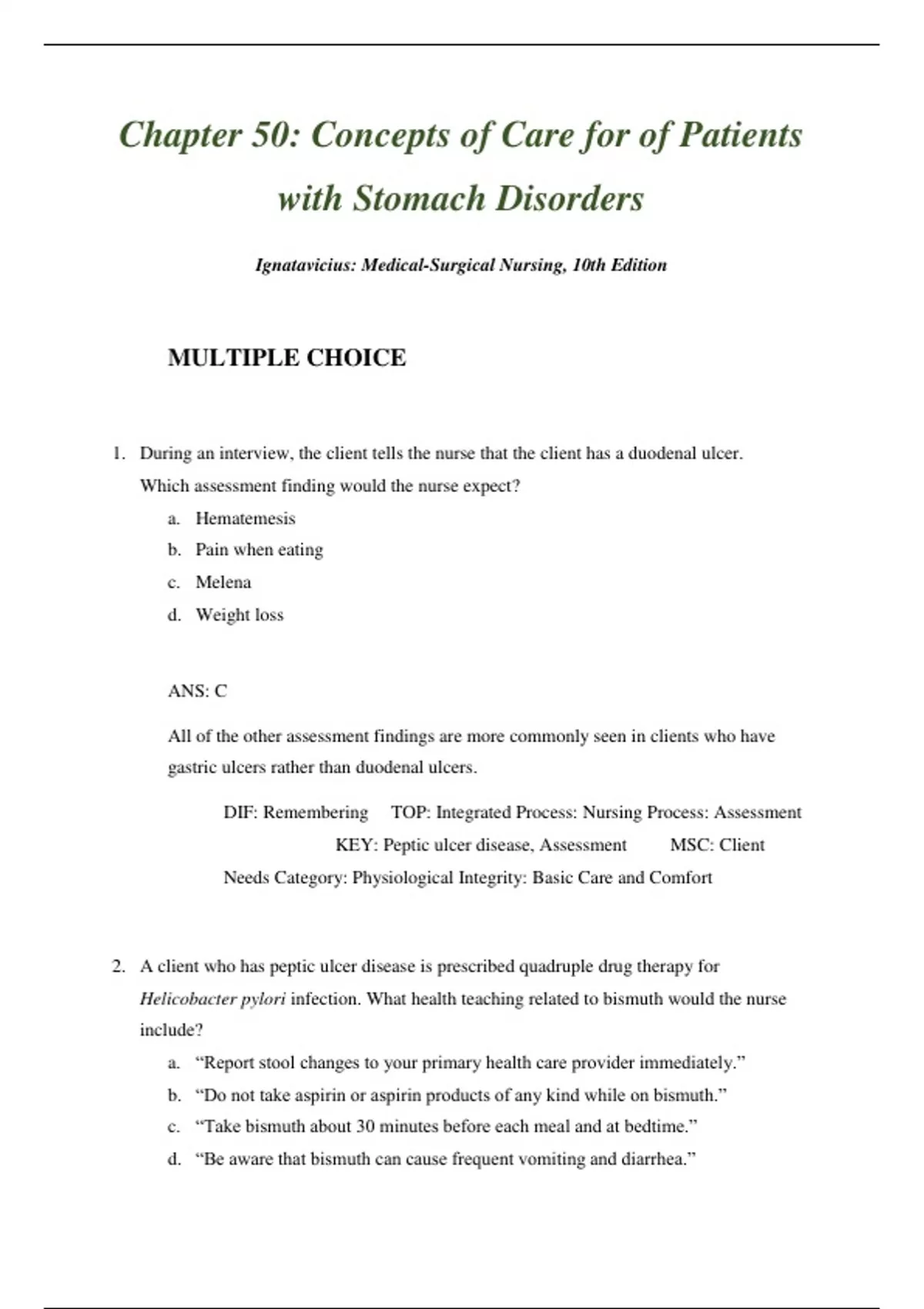 1. During an interview, the client tells the nurse that the client has a duodenal ulcer.