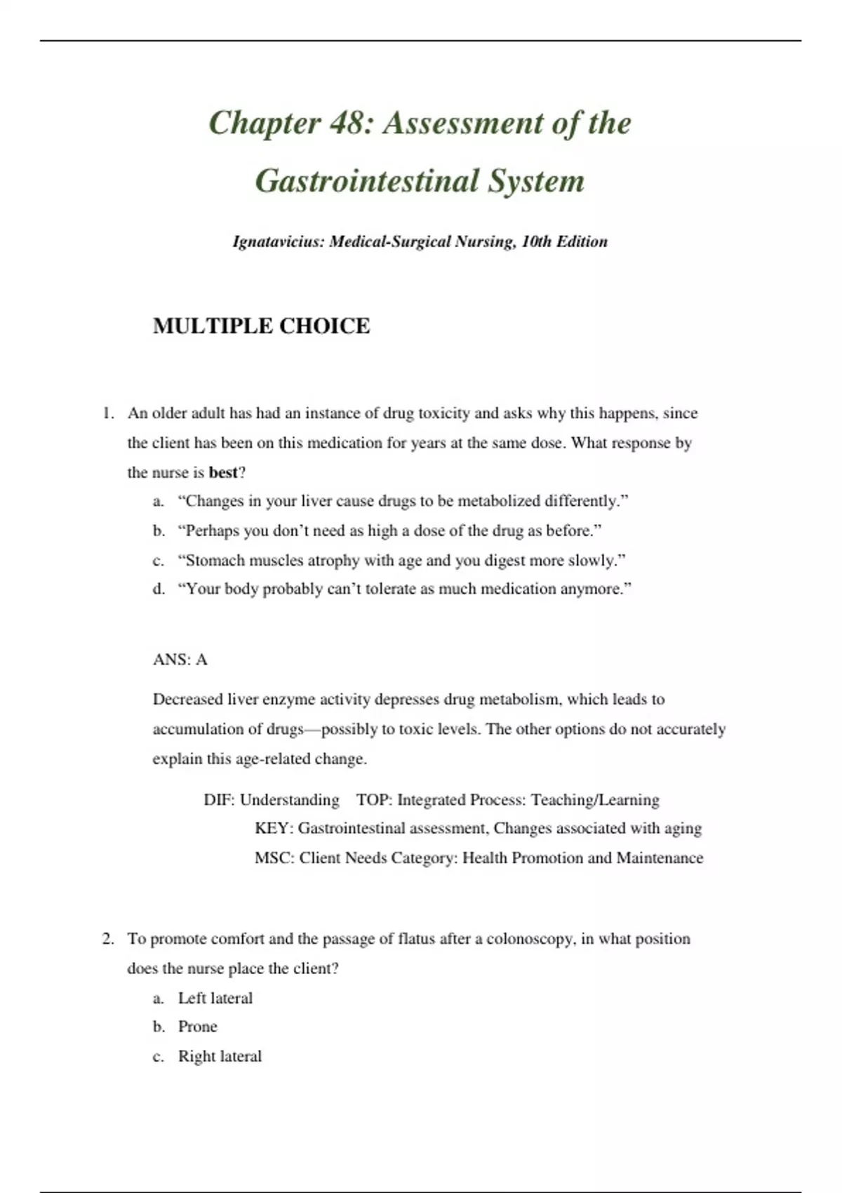 KEY: Gastrointestinal assessment, Changes associated with aging
