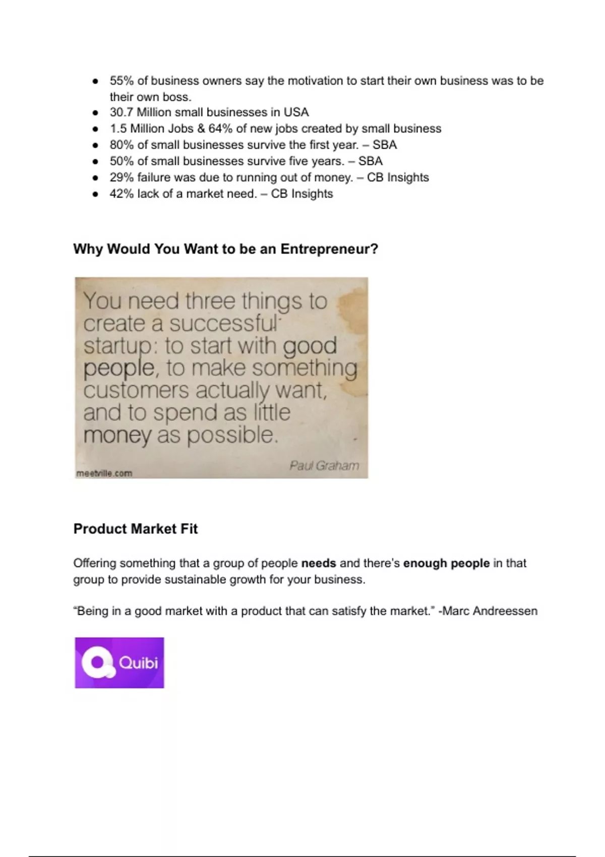 ● 42% lack of a market need. – CB Insights
