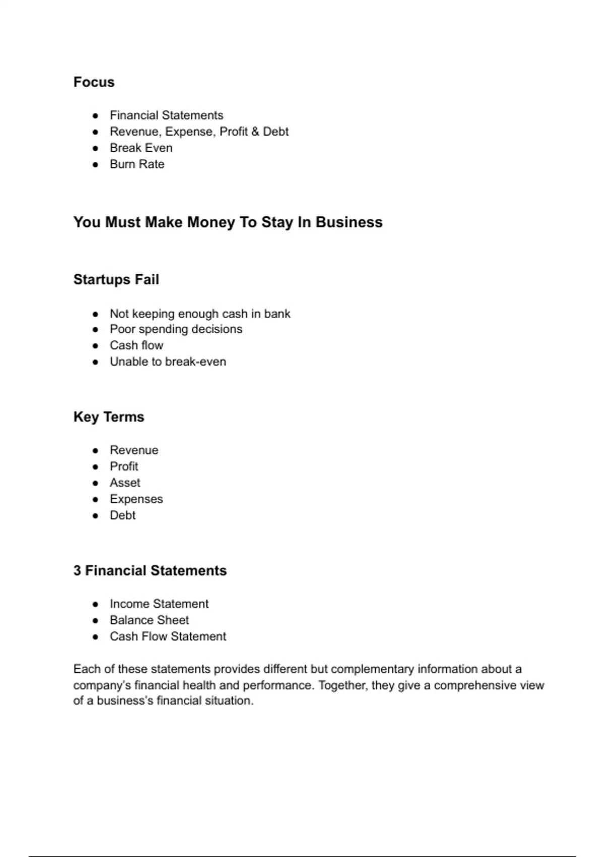 The "nuts and bolts" of a business and explore the key financial terms and tools used in startups and business. Key financial business terms Financial statements Break even analysis How to calculate a burn rate and why it is important