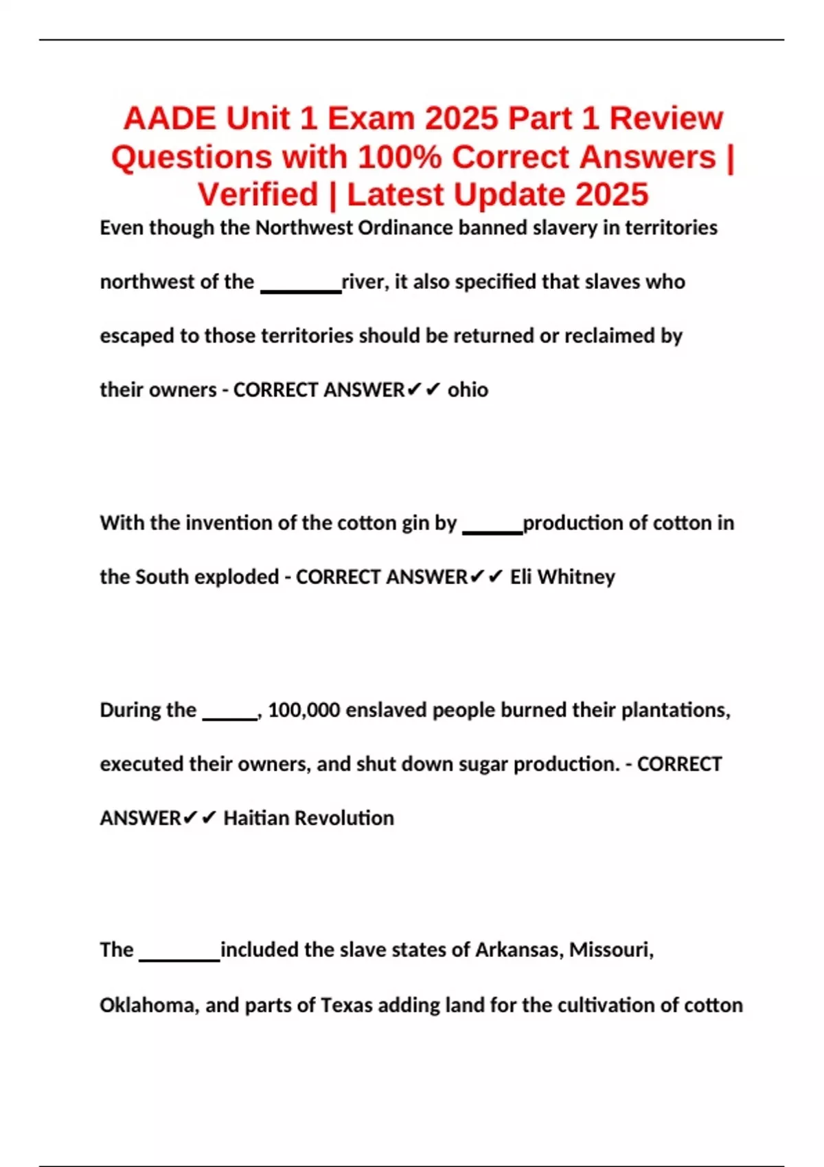 AADE Unit 1 Exam 2025 Part 1 Review Questions with 100% Correct Answers | Verified | Latest Update 2025