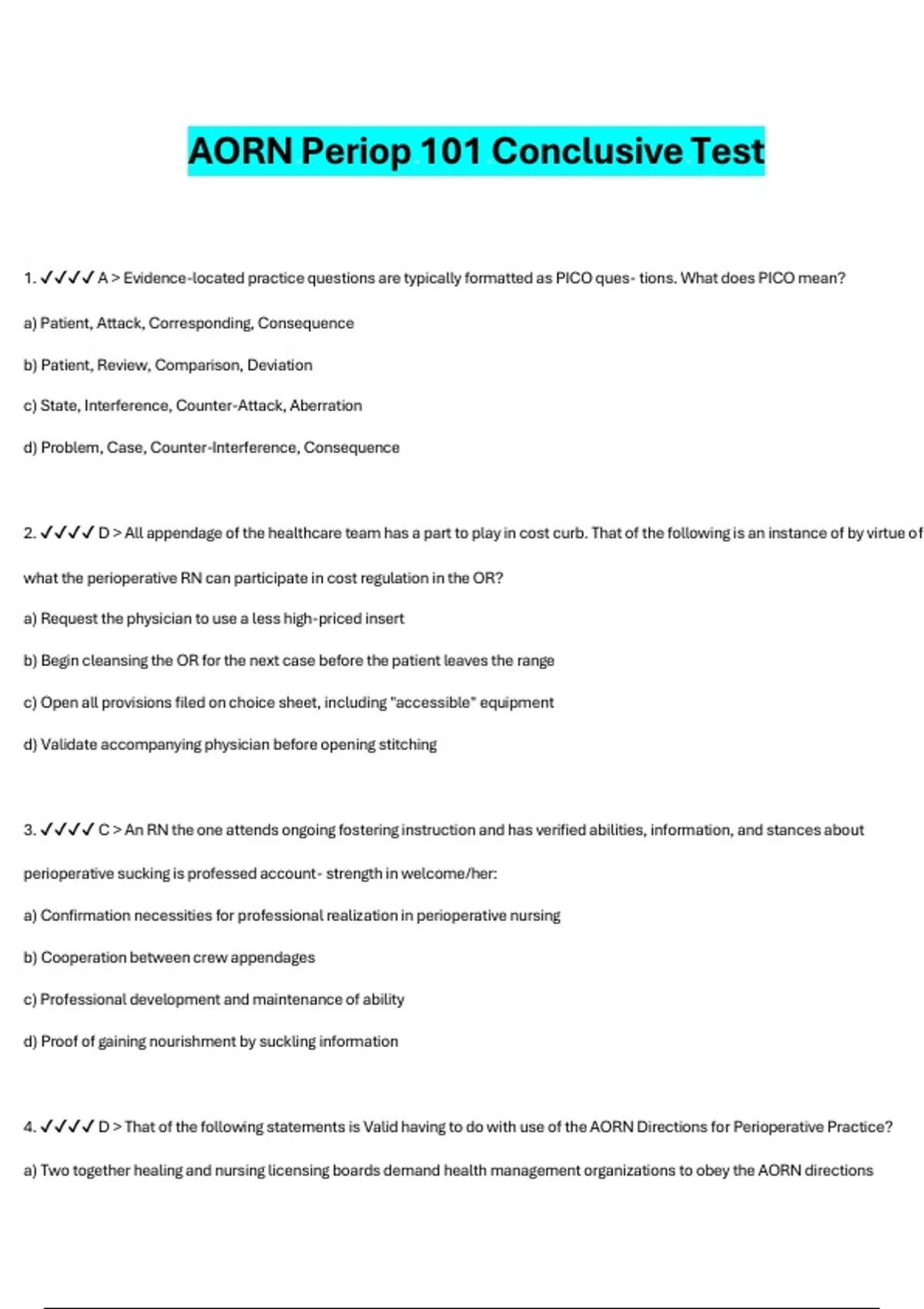 4. ✔✔✔✔ D > That of the following statements is Valid having to do with use of the AORN Directions for Perioperative Practice?