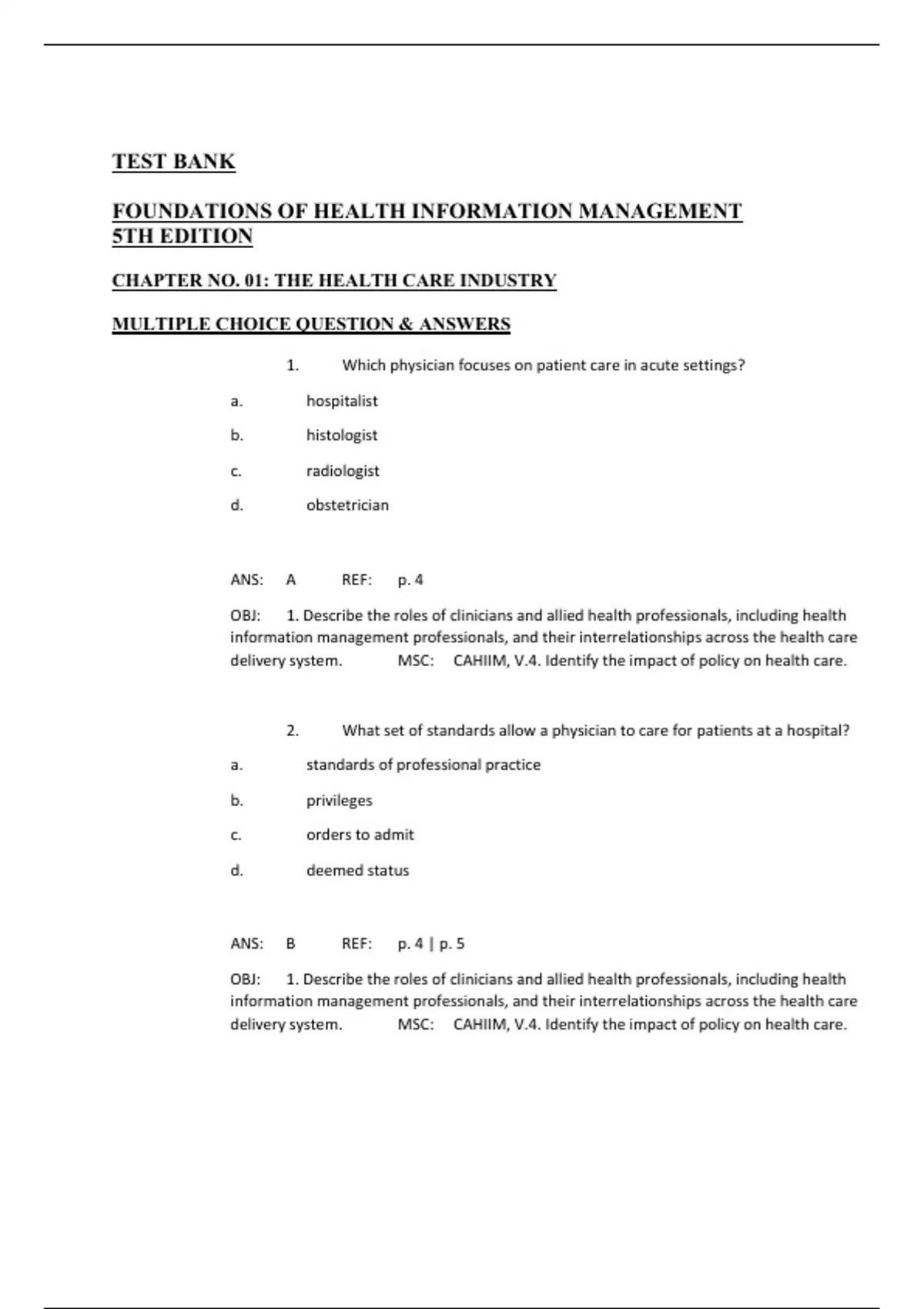 delivery system. MSC: CAHIIM, V.4. Identify the impact of policy on health care.