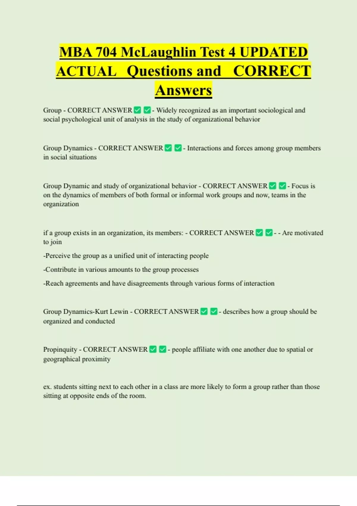 Group Dynamics-Kurt Lewin - CORRECT ANSWER - describes how a group should be