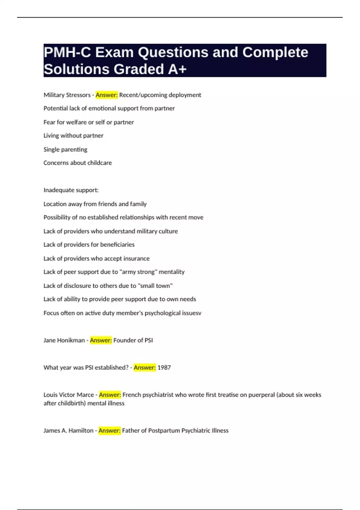PMH-C Exam Questions and Complete