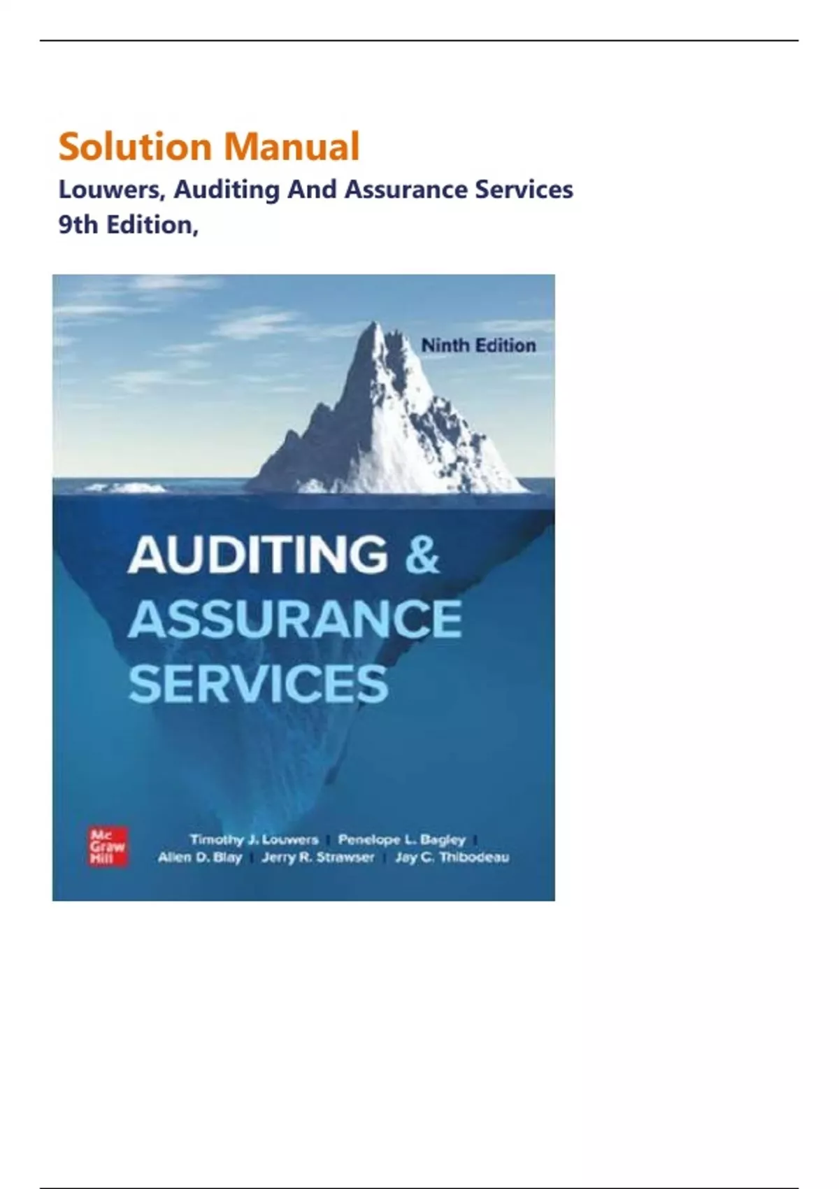 Solution Manual For Auditing and Assurance Services 9th Edition by Timothy Louwers, Penelope Bagley| All Chapters 1 - 12 Covered | Complete Guide A+