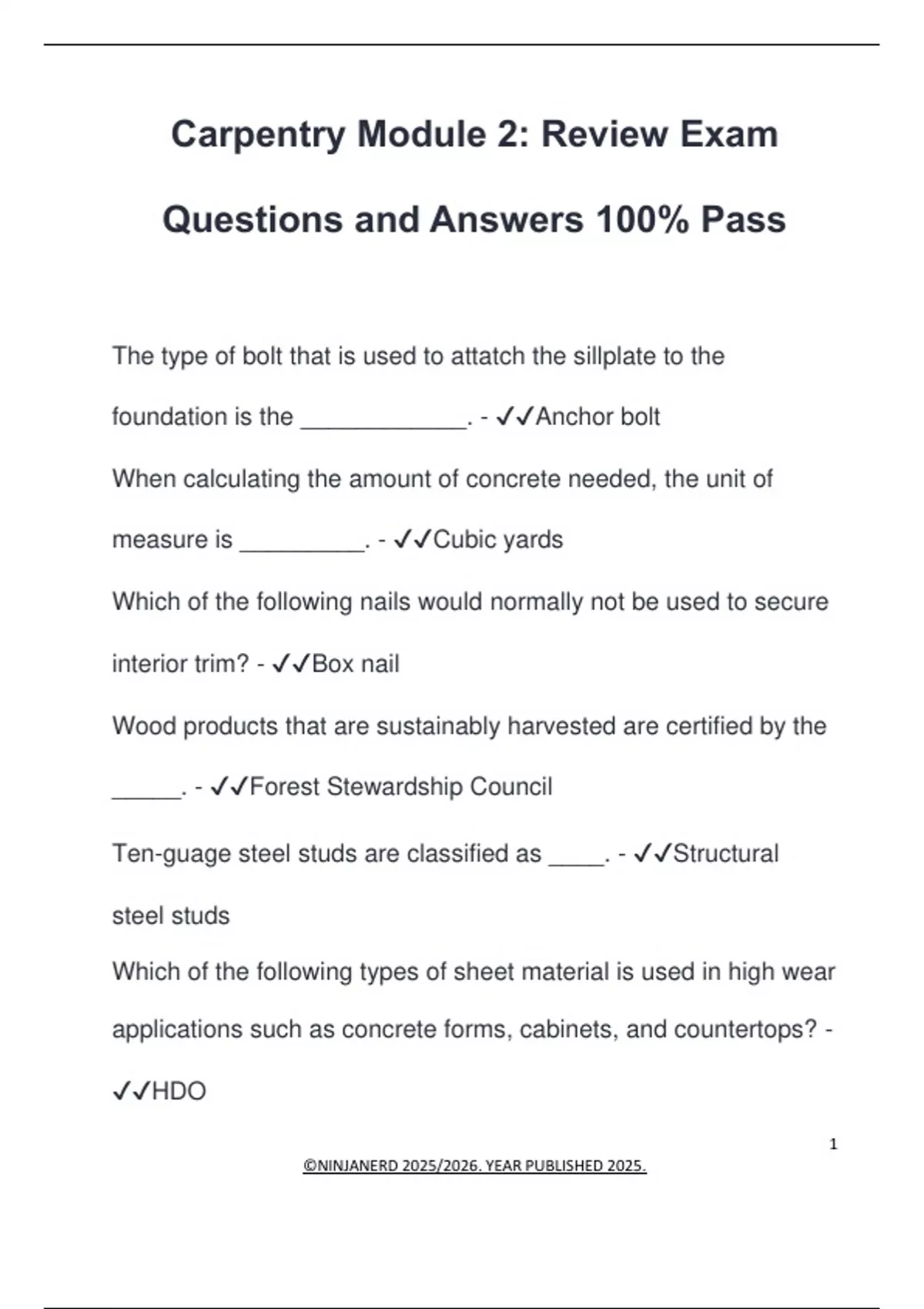 Questions and Answers 100% Pass