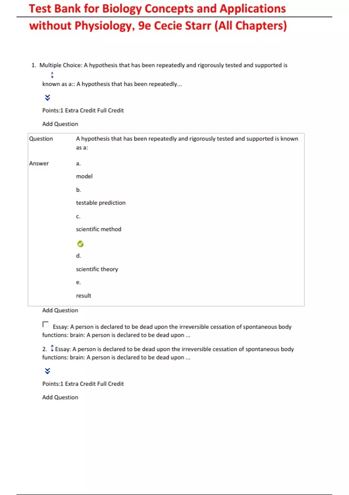 Test Bank for Biology Concepts and Applications