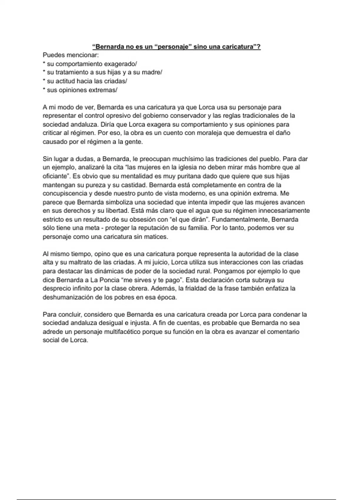 A mi modo de ver, Bernarda es una caricatura ya que Lorca usa su personaje para