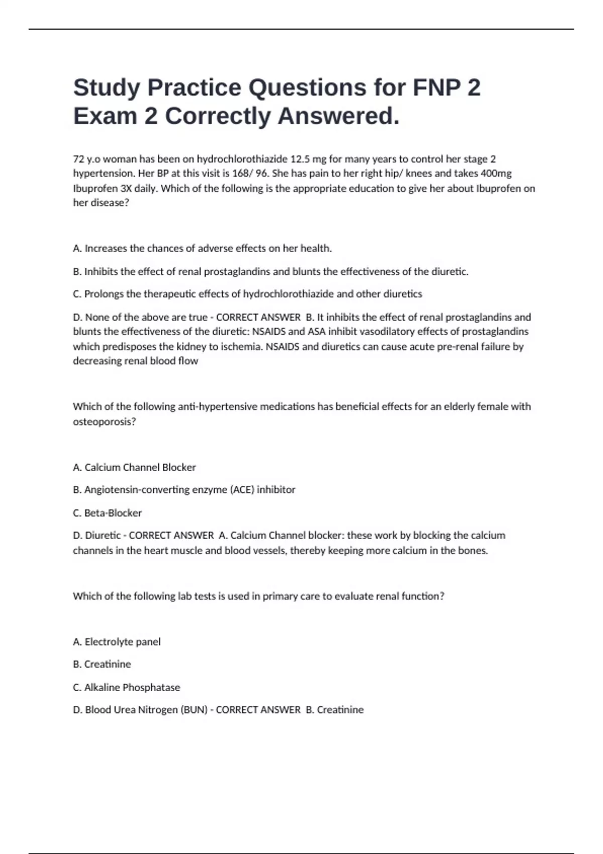 D. Blood Urea Nitrogen (BUN) - CORRECT ANSWER B. Creatinine