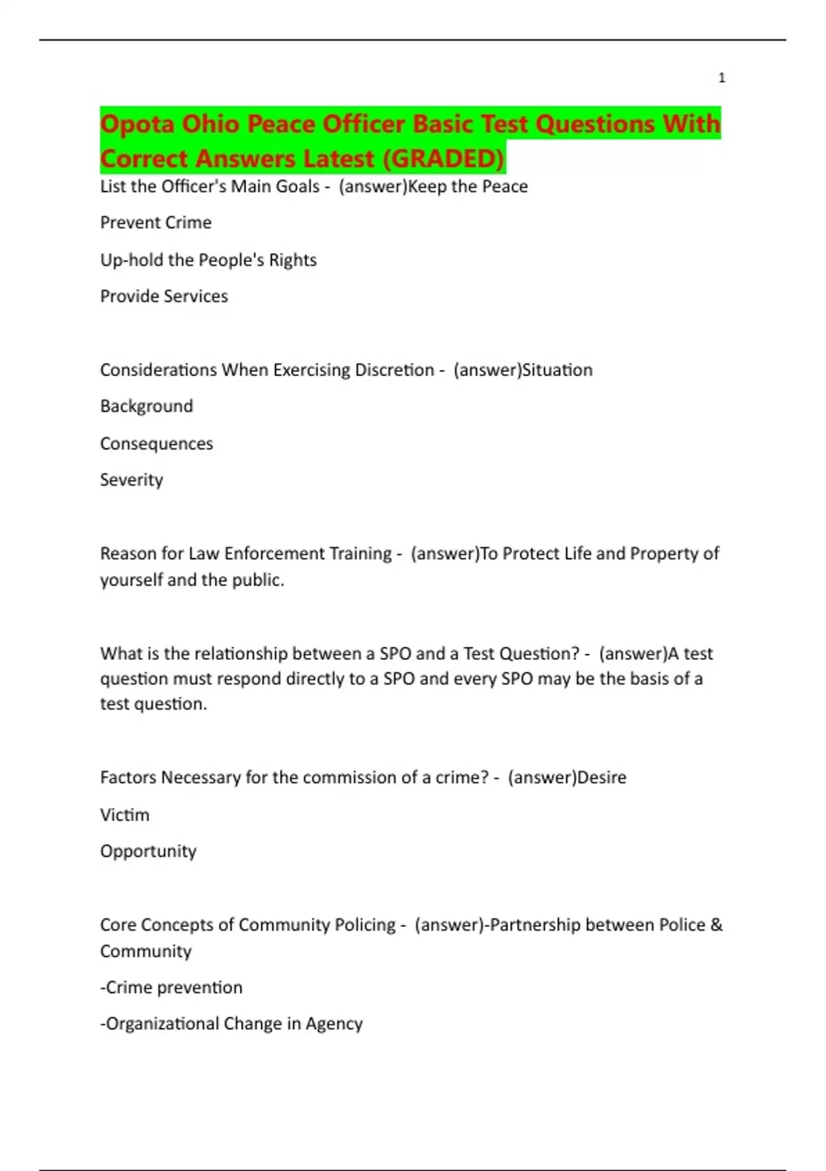 Opota Ohio Peace Officer Basic Test Questions With