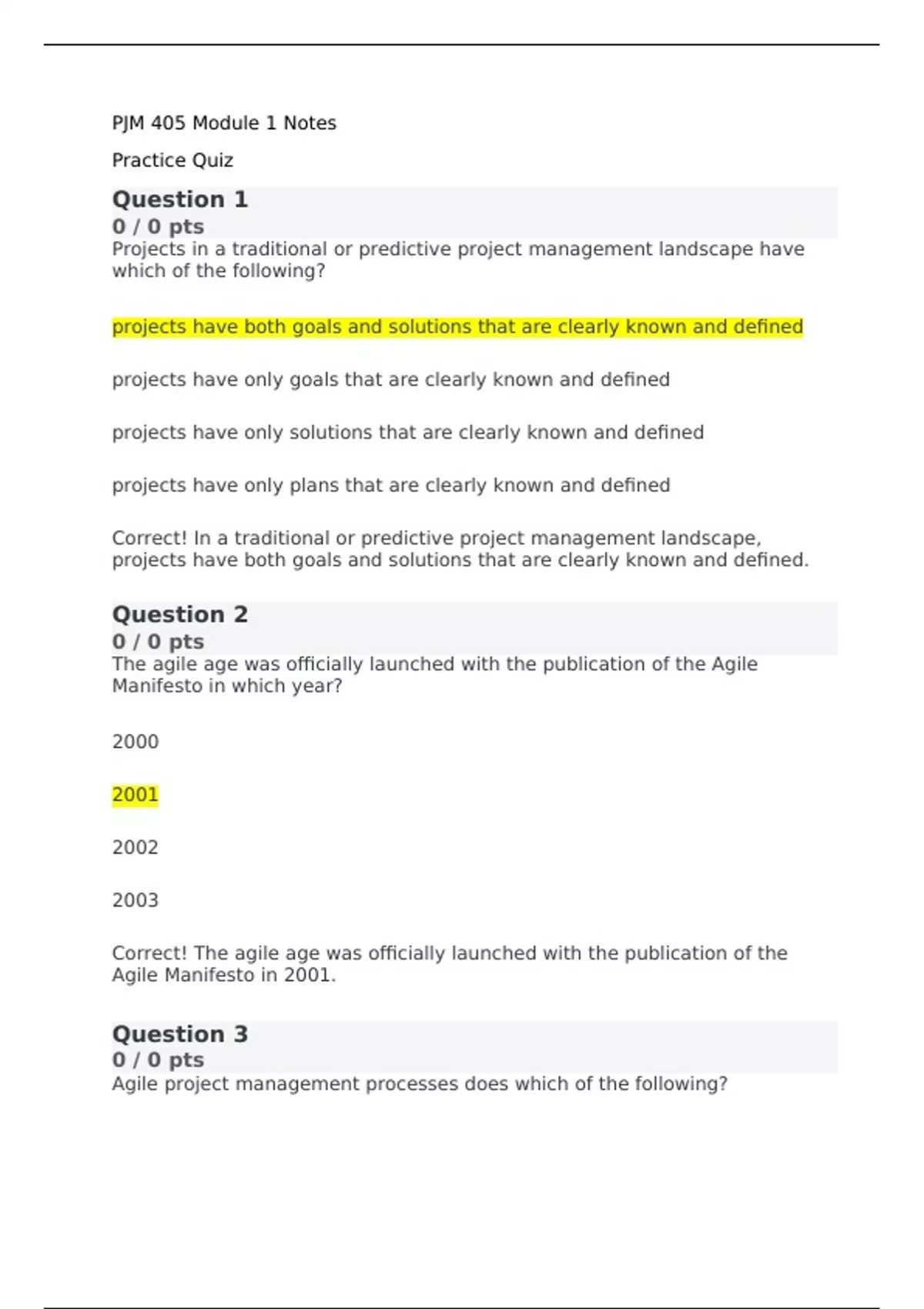 Correct! The Agile Manifesto was designed to be a set of 12 guiding
