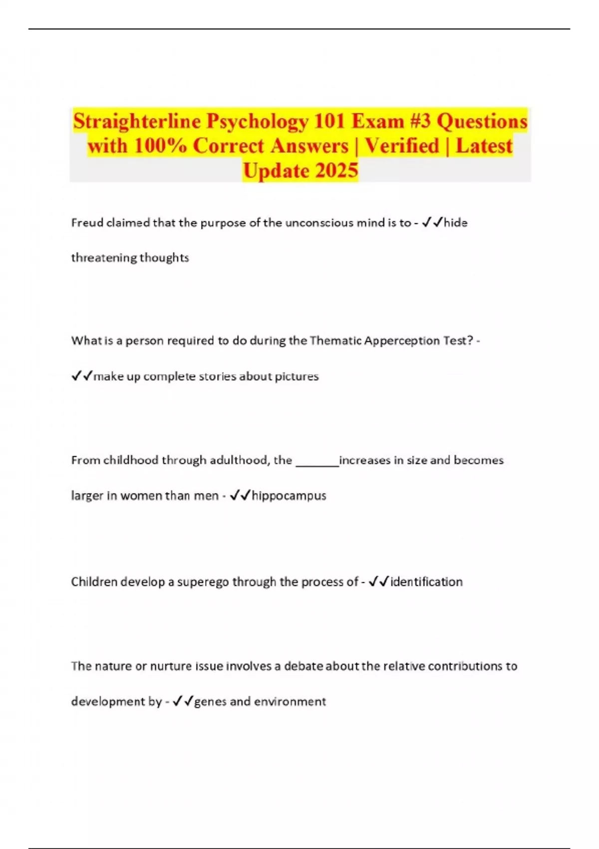 Straighterline Psychology 101 Exam #3 Questions with 100% Correct Answers | Verified | Latest Update 2025