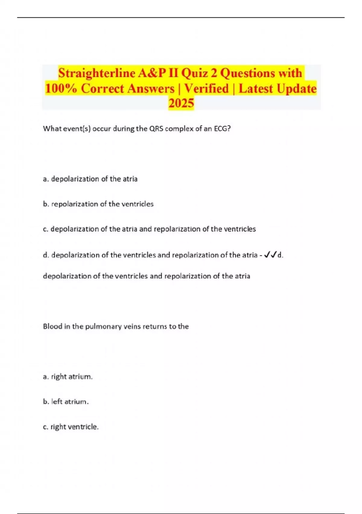 Straighterline A&P II Quiz 2 Questions with 100% Correct Answers | Verified | Latest Update 2025