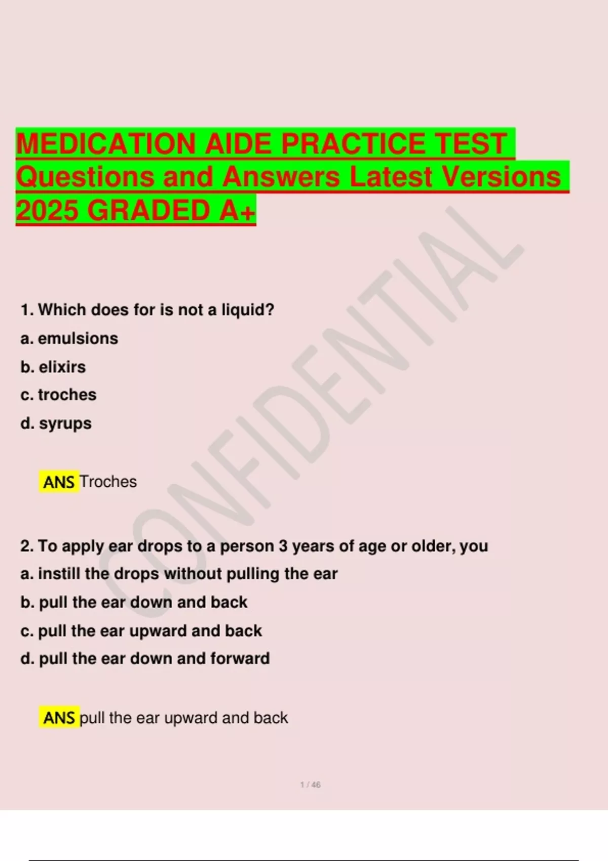 MEDICATION AIDE PRACTICE TEST