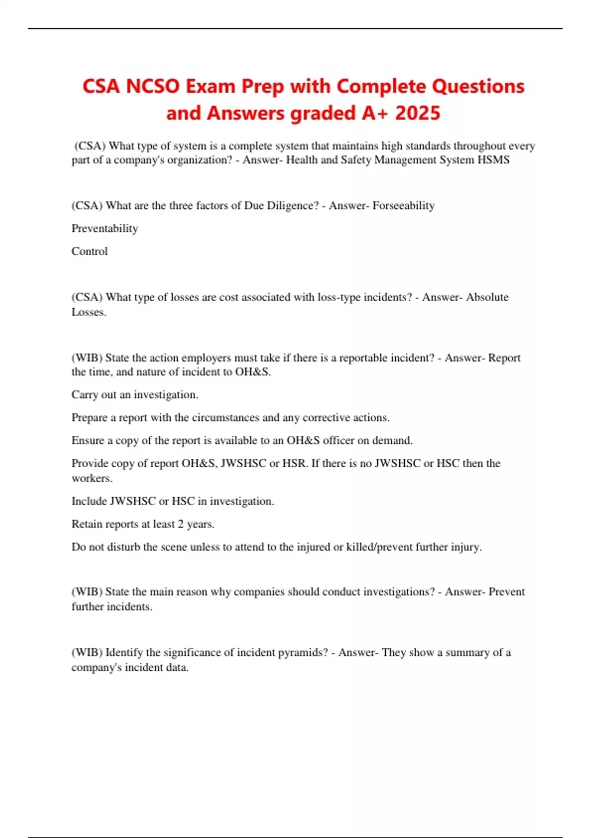 (CSA) What are the three factors of Due Diligence? - Answer- Forseeability