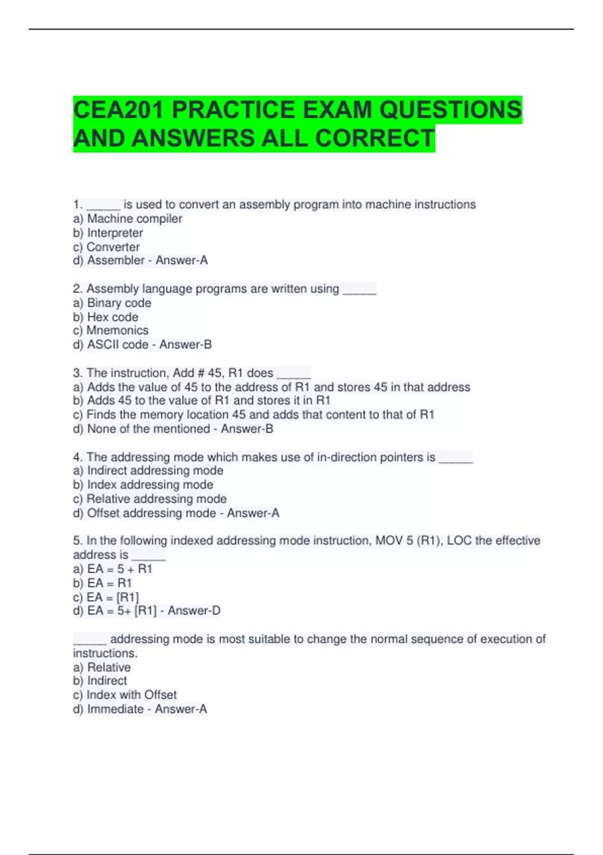 5. In the following indexed addressing mode instruction, MOV 5 (R1), LOC the effective