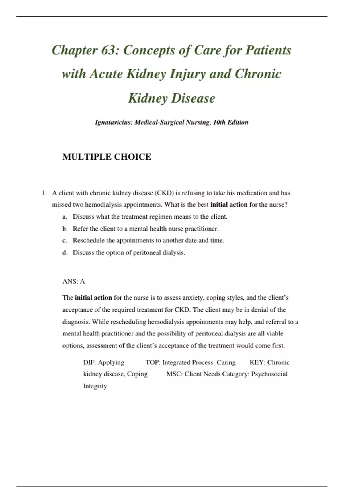 KEY: Chronic kidney disease, Diet therapy MSC: Client Needs