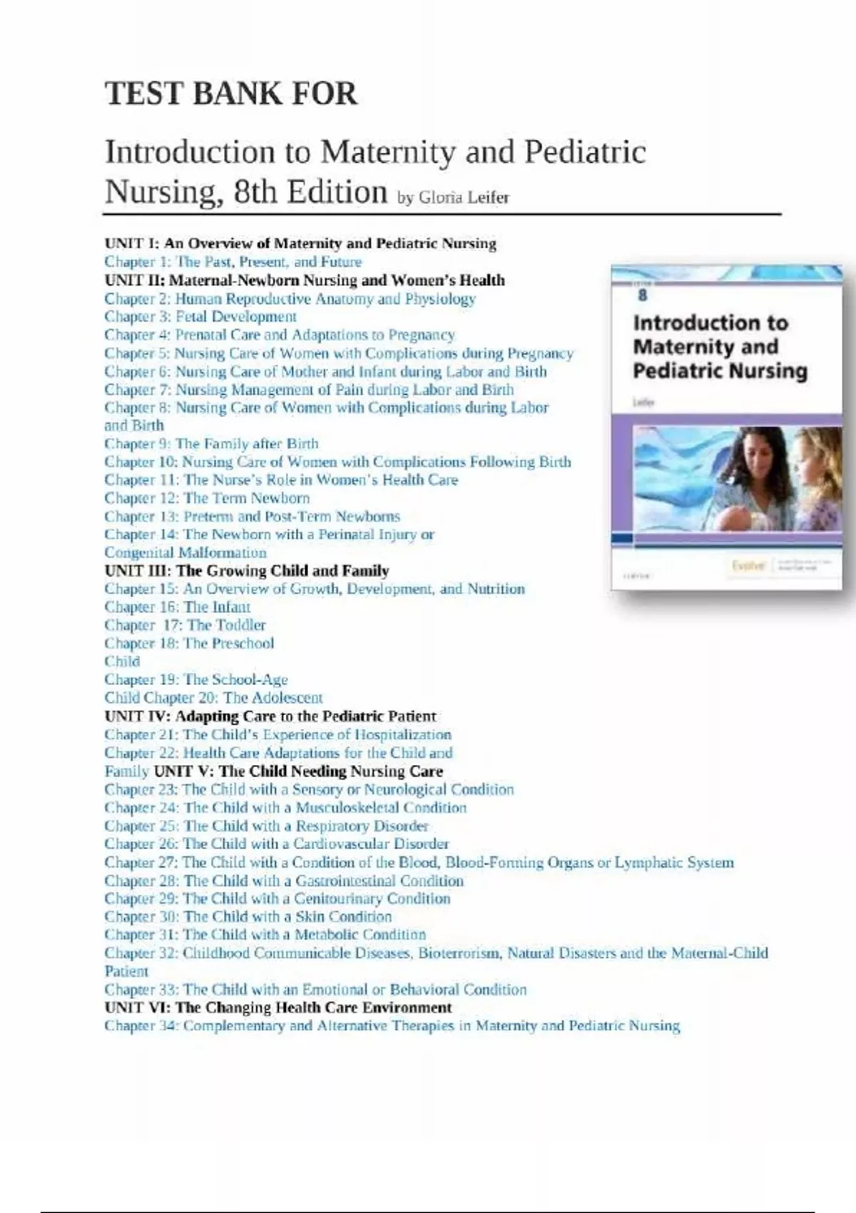 TEST BANK FOR Introduction to Maternity and Pediatric Nursing, 8th Edition by Gloria