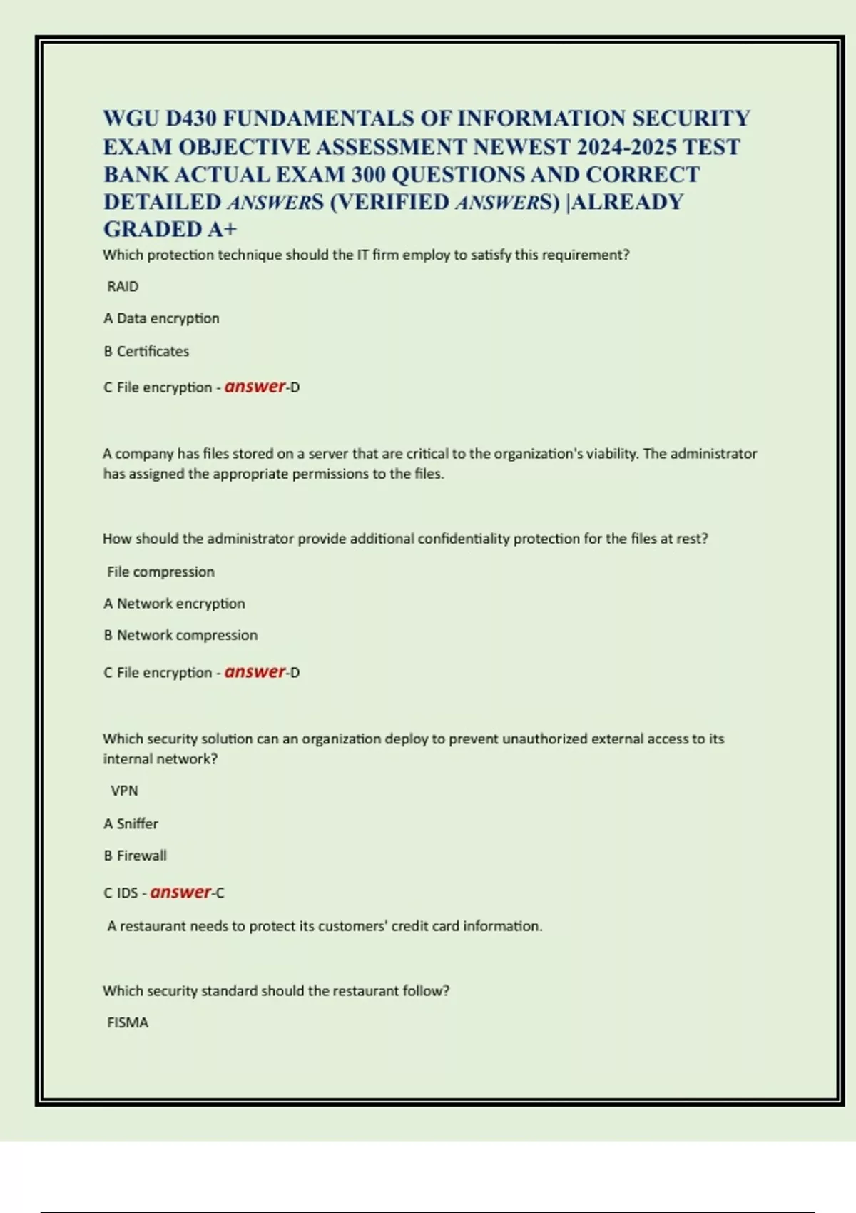 BANK ACTUAL EXAM 300 QUESTIONS AND CORRECT