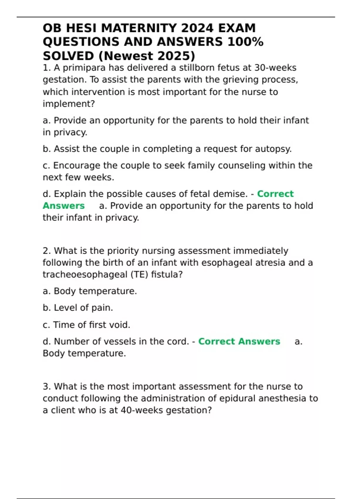OB HESI MATERNITY 2024 EXAM QUESTIONS AND ANSWERS 100- SOLVED (Newest 2025)