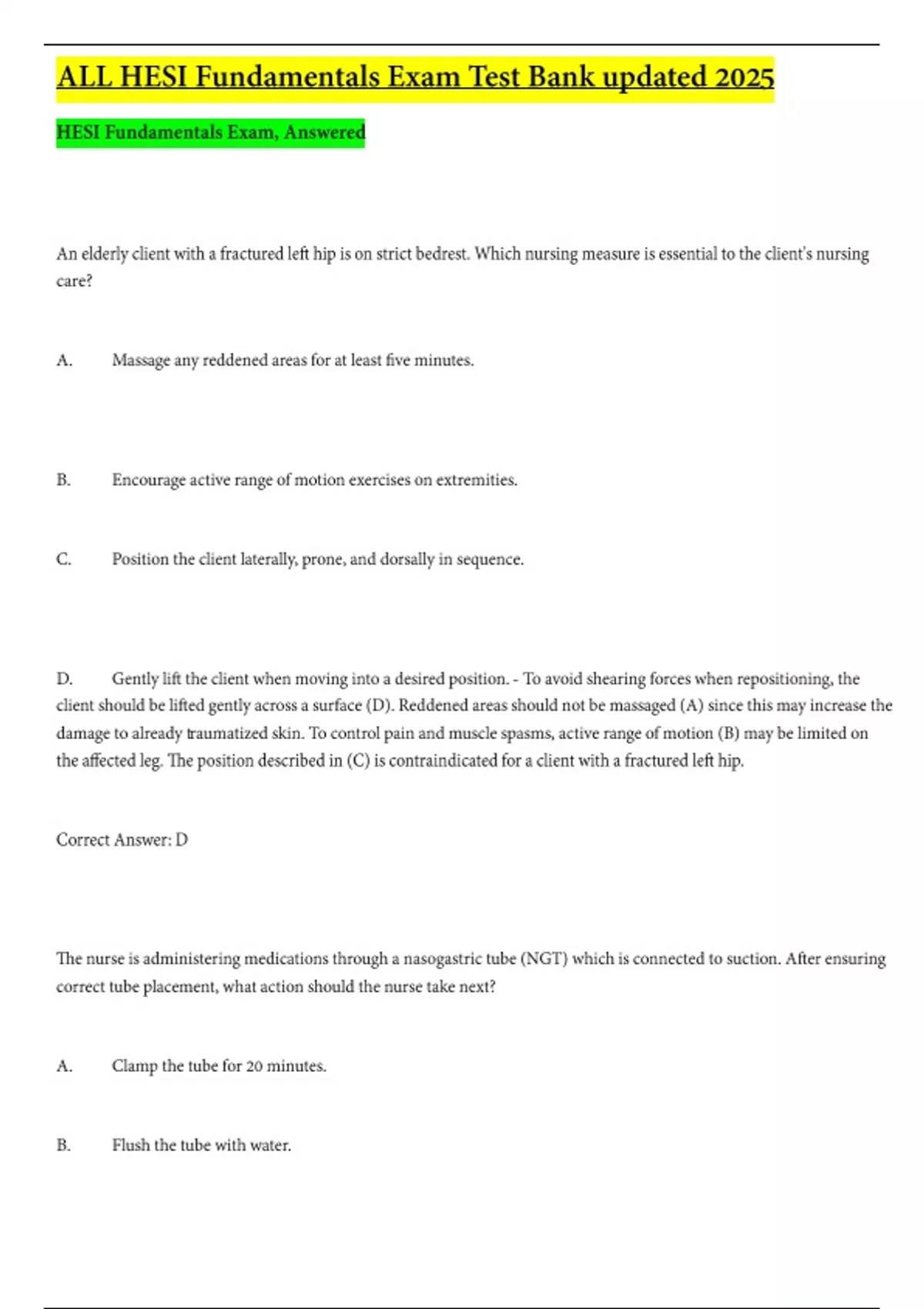 ALL HESI Fundamentals Exam Test Bank updated 2025